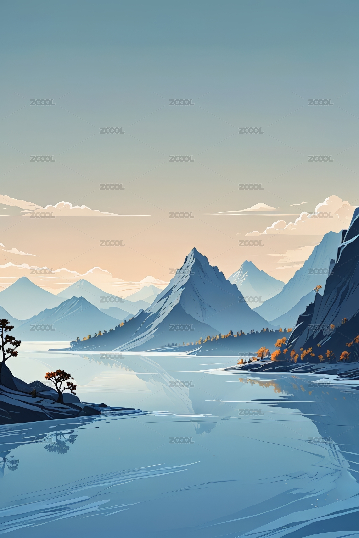 简约静谧粉色山水风光