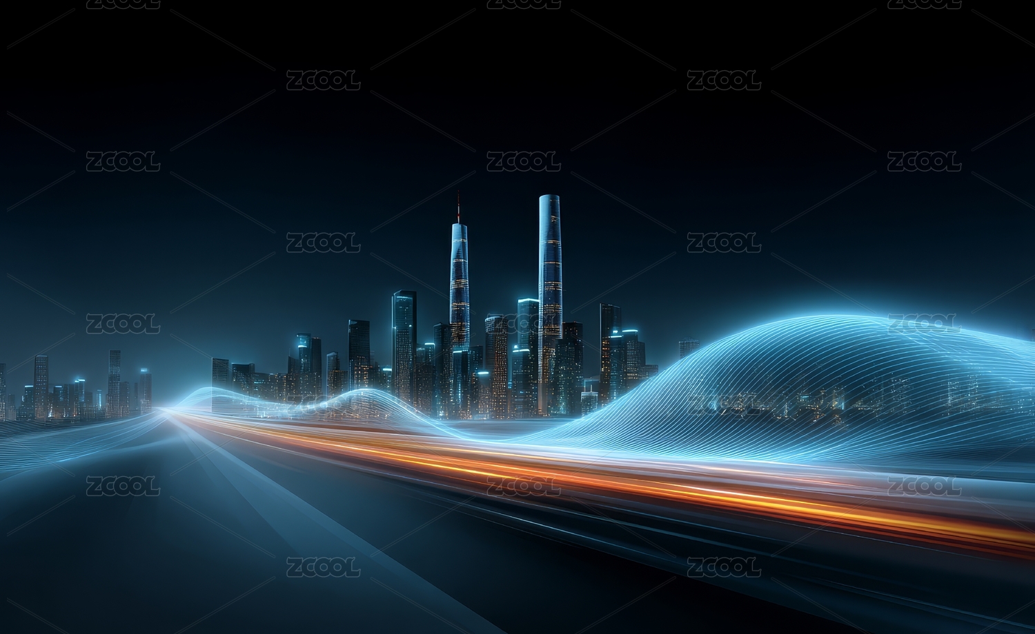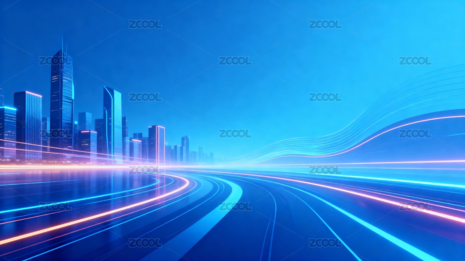 未来城市的夜景霓虹灯勾勒的摩天大楼