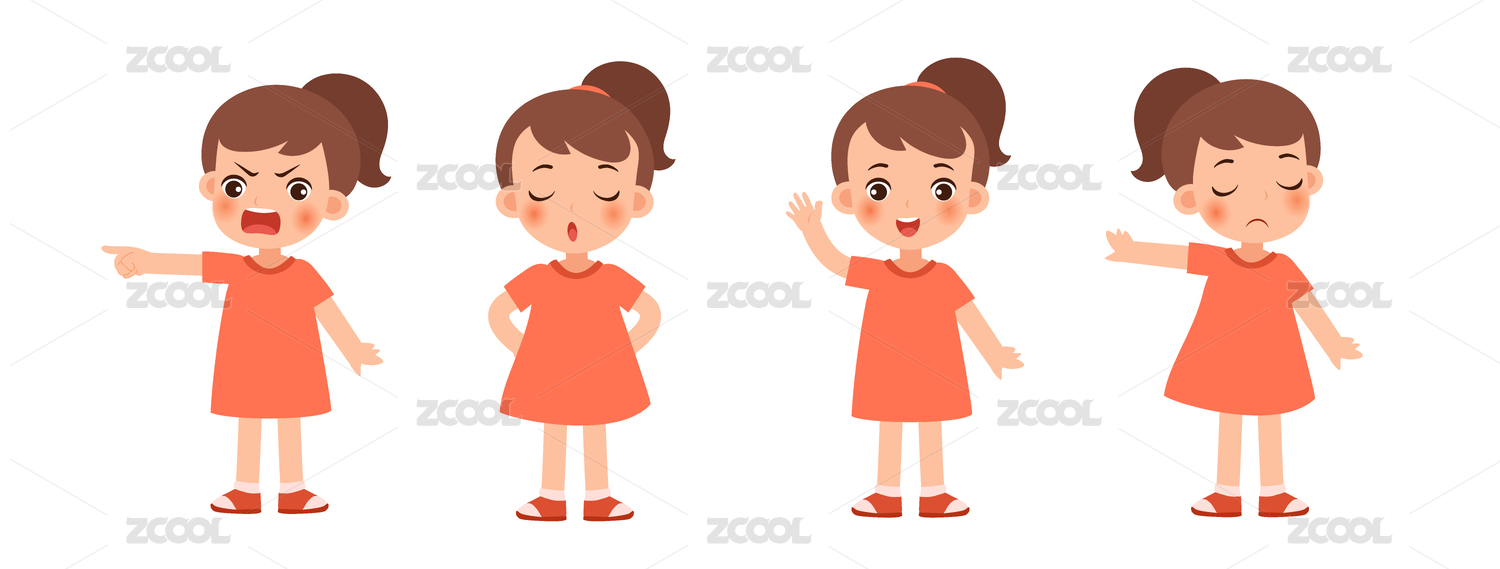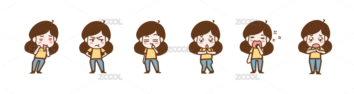 卡通人物设计女孩表情包设计萌萌哒矢量图