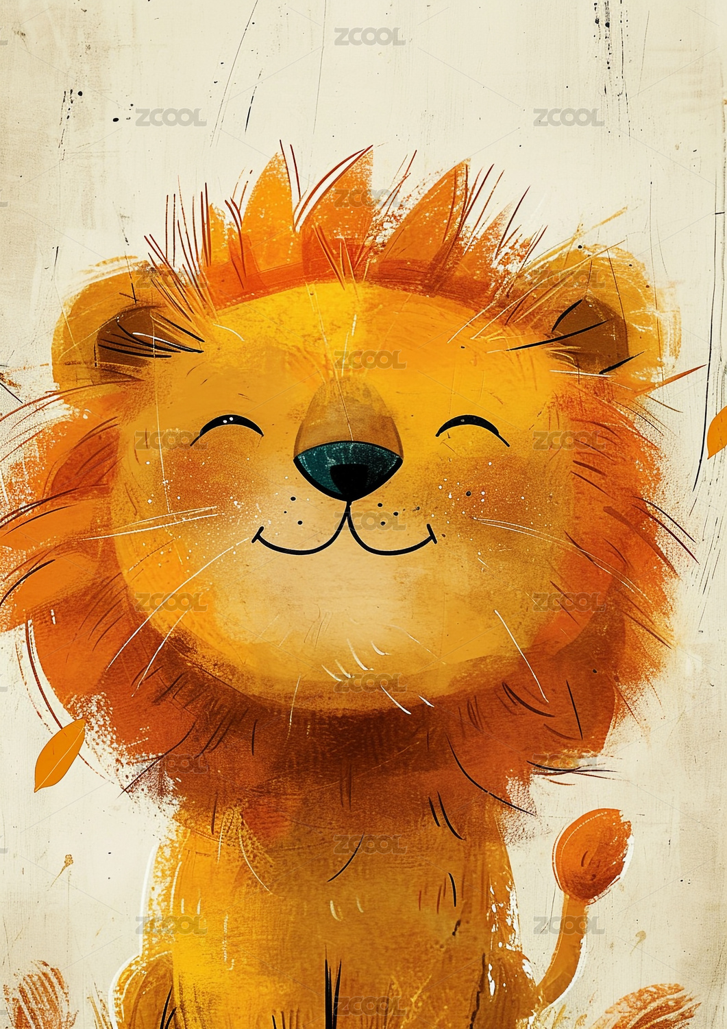 可爱,儿童画,沙漠,草原,鬃毛,雄狮,插画,绘画,扁平,手绘