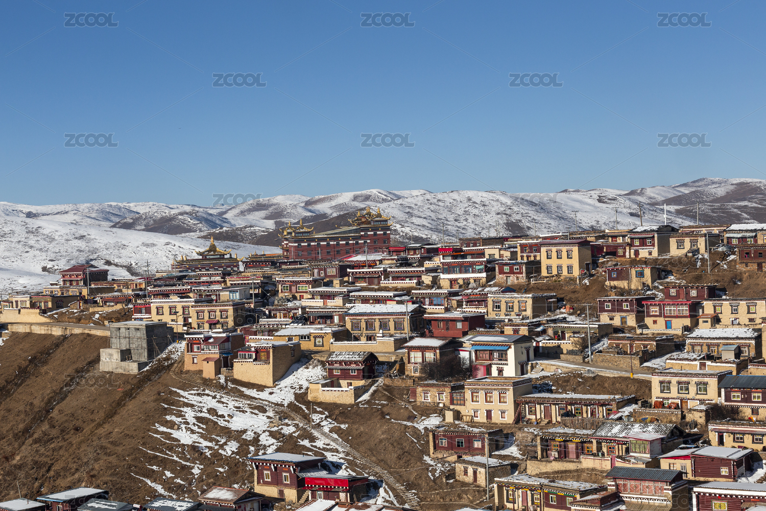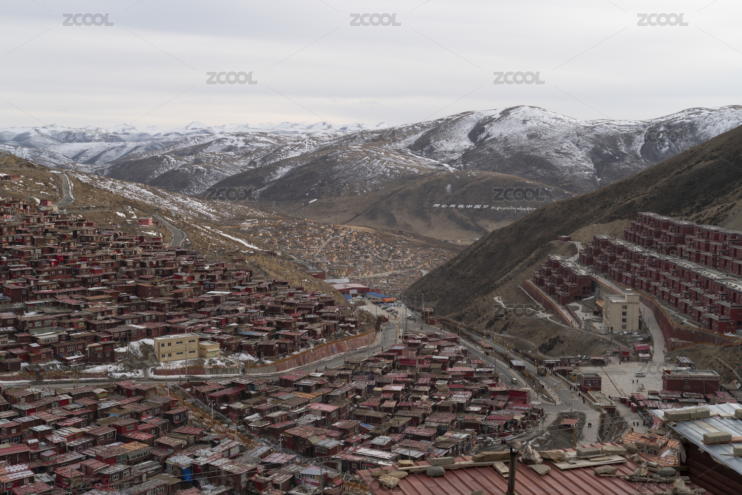 东亚,中国,亚洲,佛学院,佛教,佛舍,依山而建,冬天,冬季,喇荣寺五明佛学院