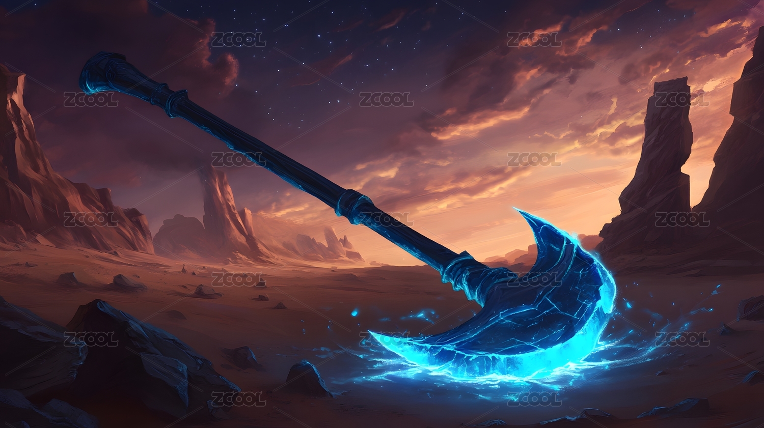 原画,黑底,荧光色,镶嵌,宝石,魔法,权杖,3D,卡通,立体