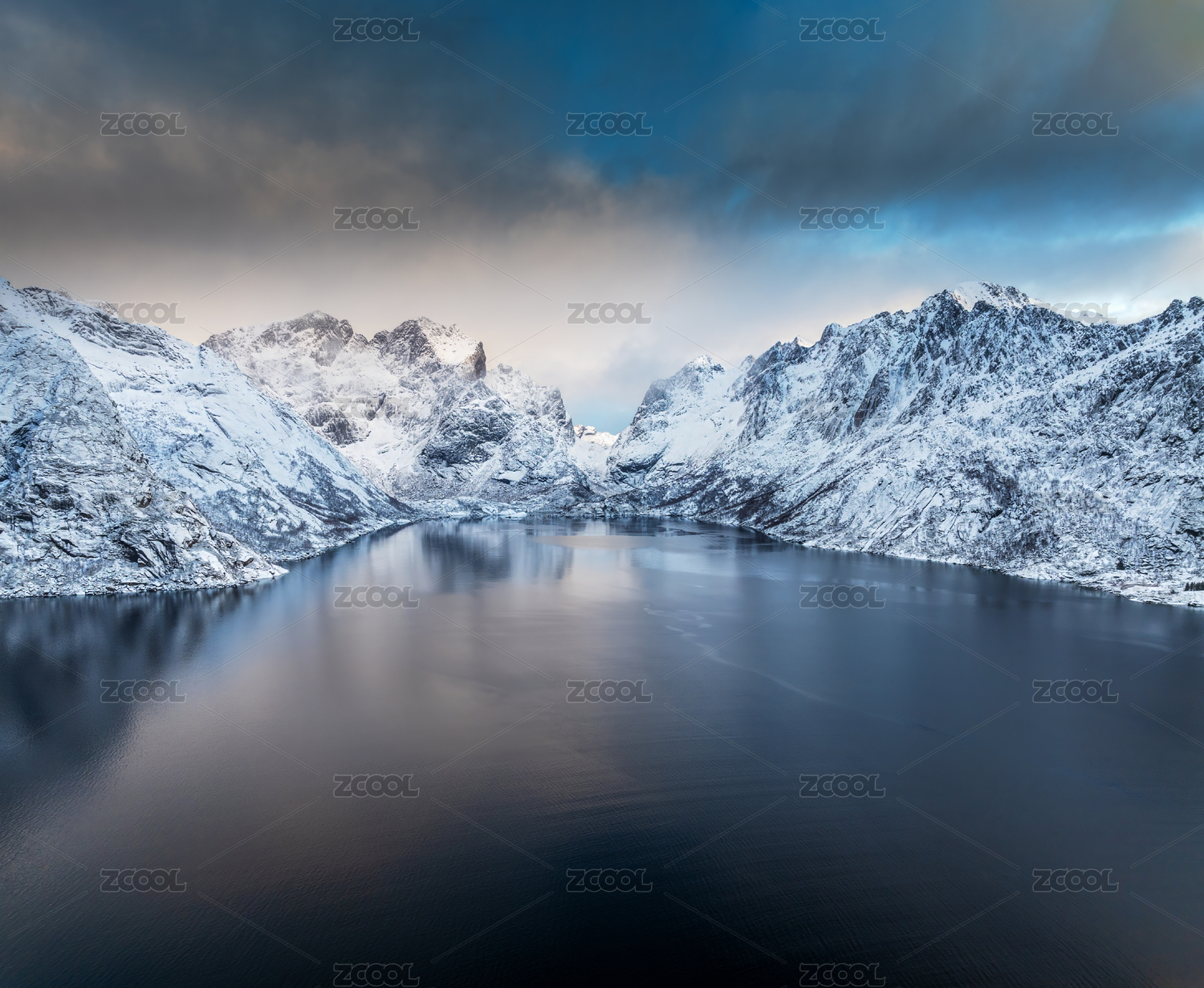 挪威,北欧,罗弗敦岛,雷讷,峡湾,雪山,冬季,清晨,日出,云