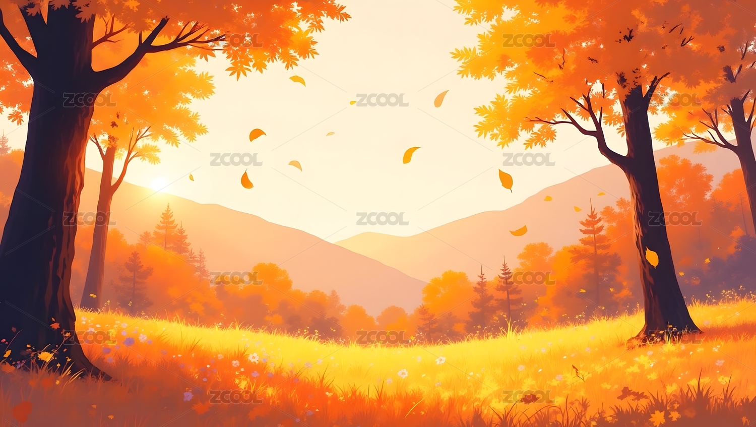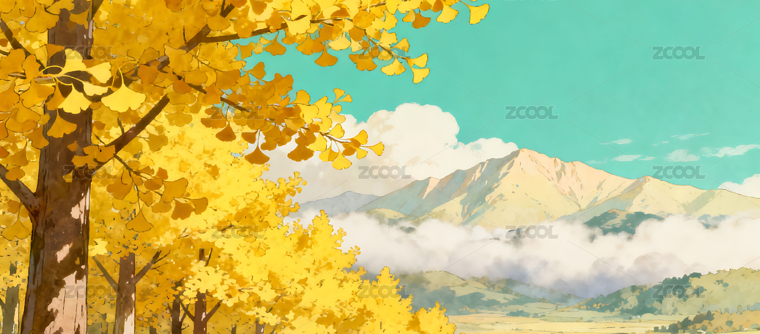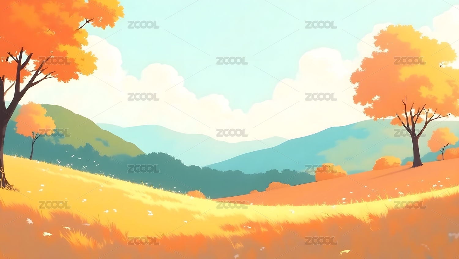秋天,秋季,金色,晴天,白天,背景,卡通,插画,季节,手绘