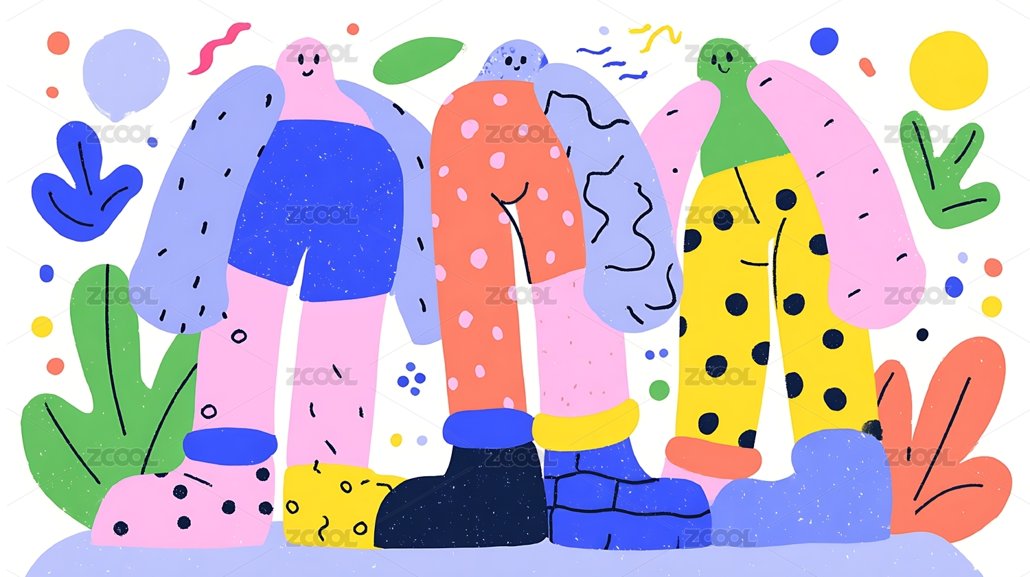 简单明亮脚上一双彩色条纹的长筒袜绘画插画