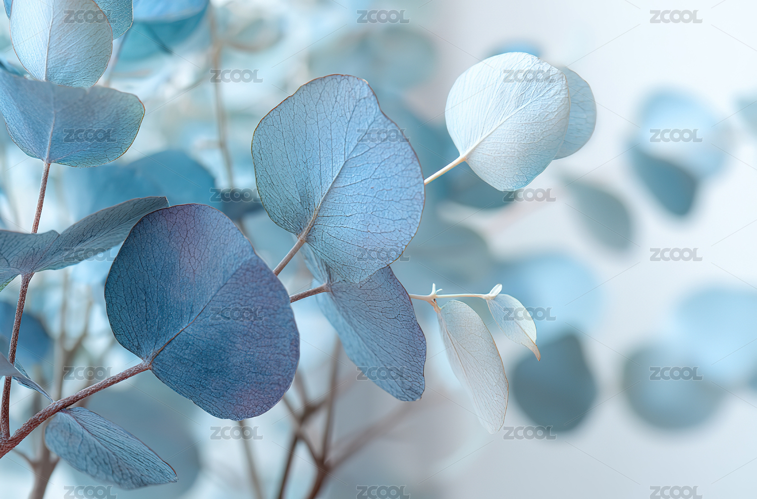 蓝灰色桉树叶片特写