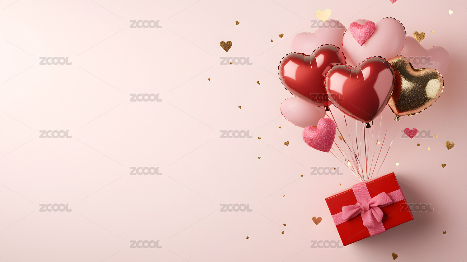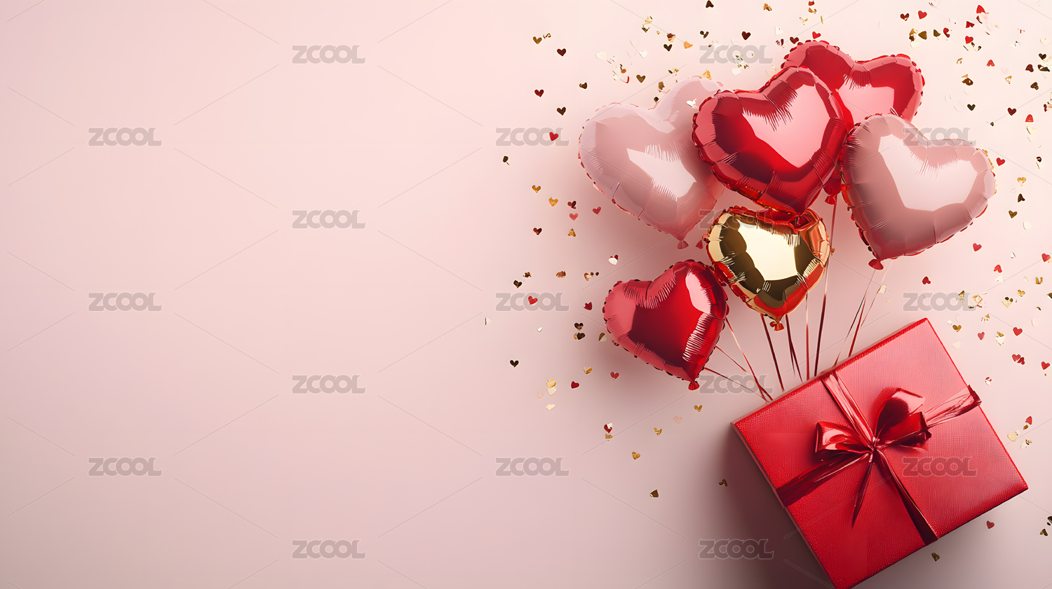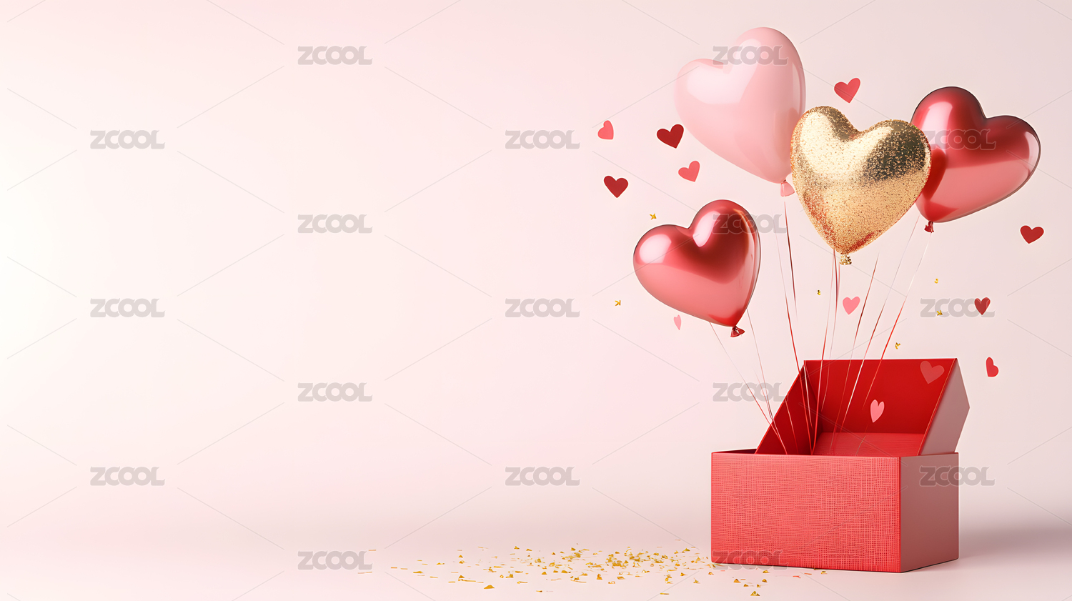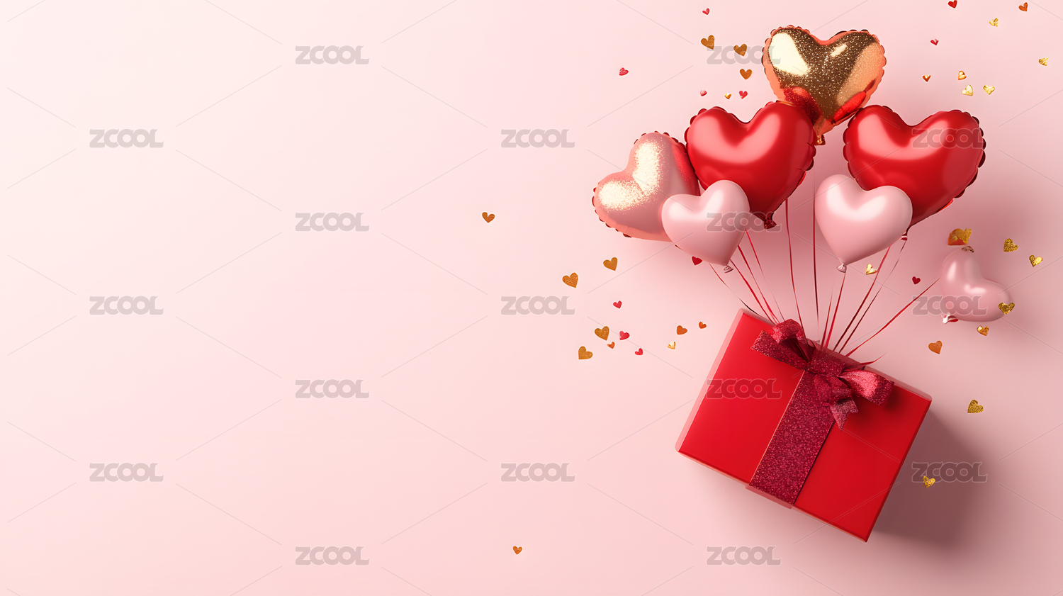 节日,礼物,礼盒,盒子,气球,红色,情人节,爱心,心形