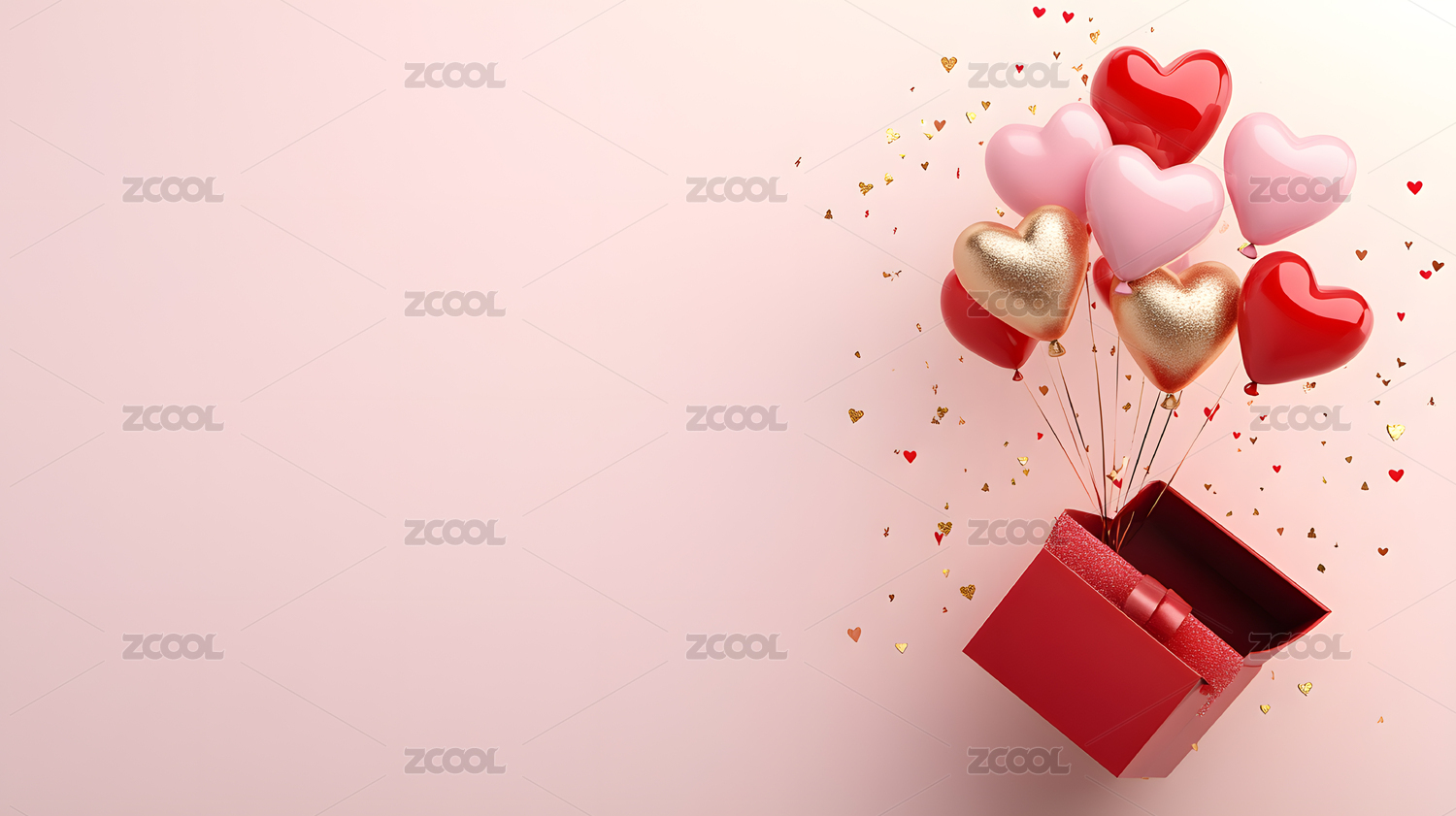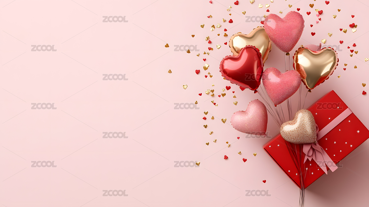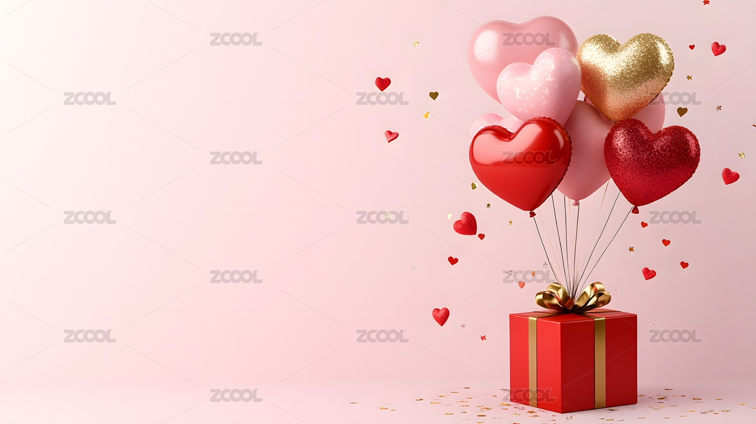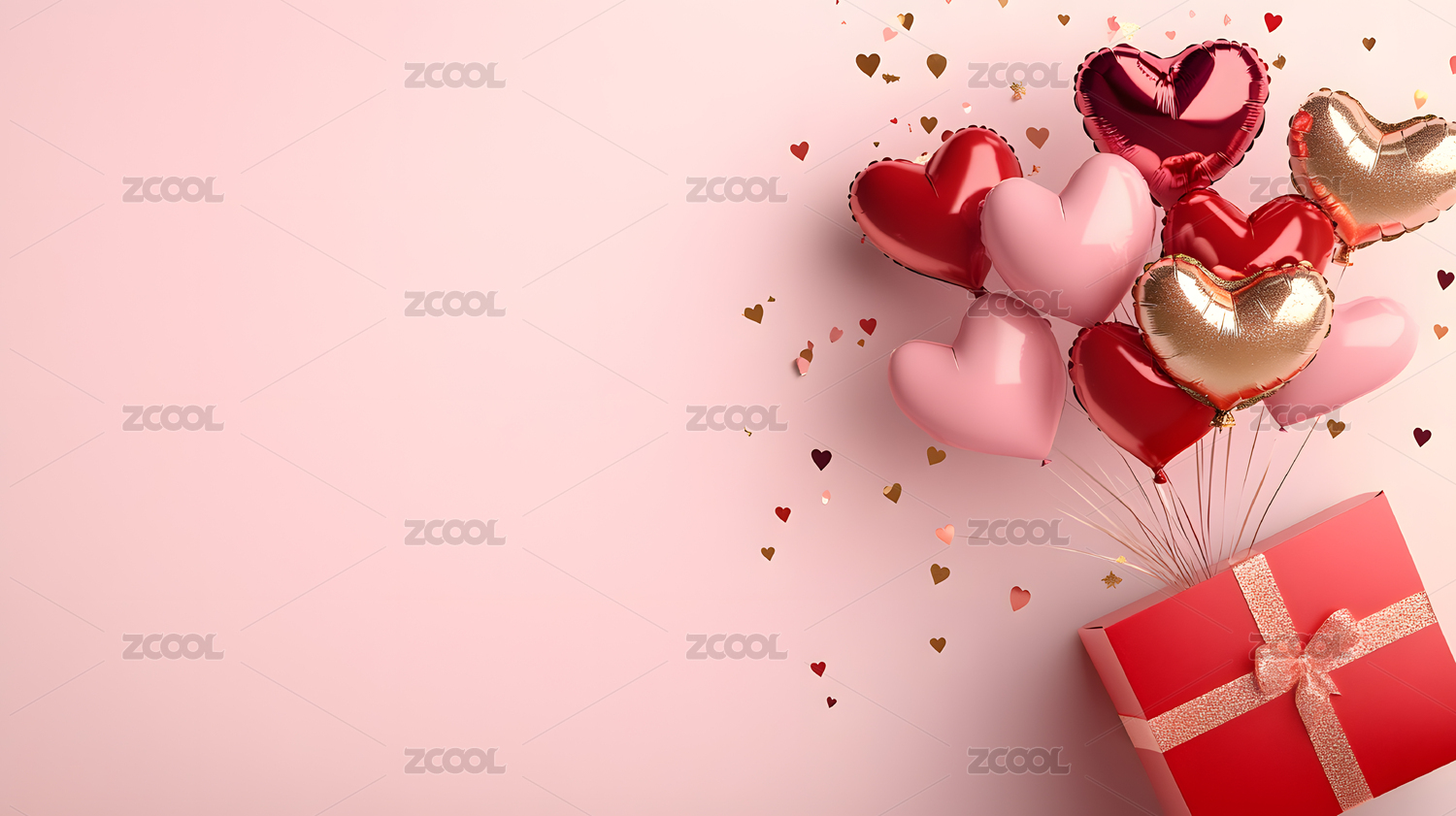 节日,礼物,礼盒,盒子,气球,红色,情人节,爱心,心形