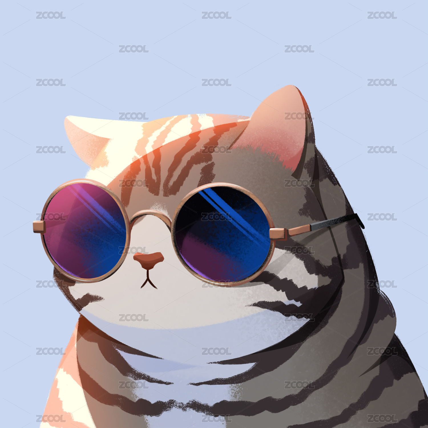 卡通戴墨镜的狸花猫头像