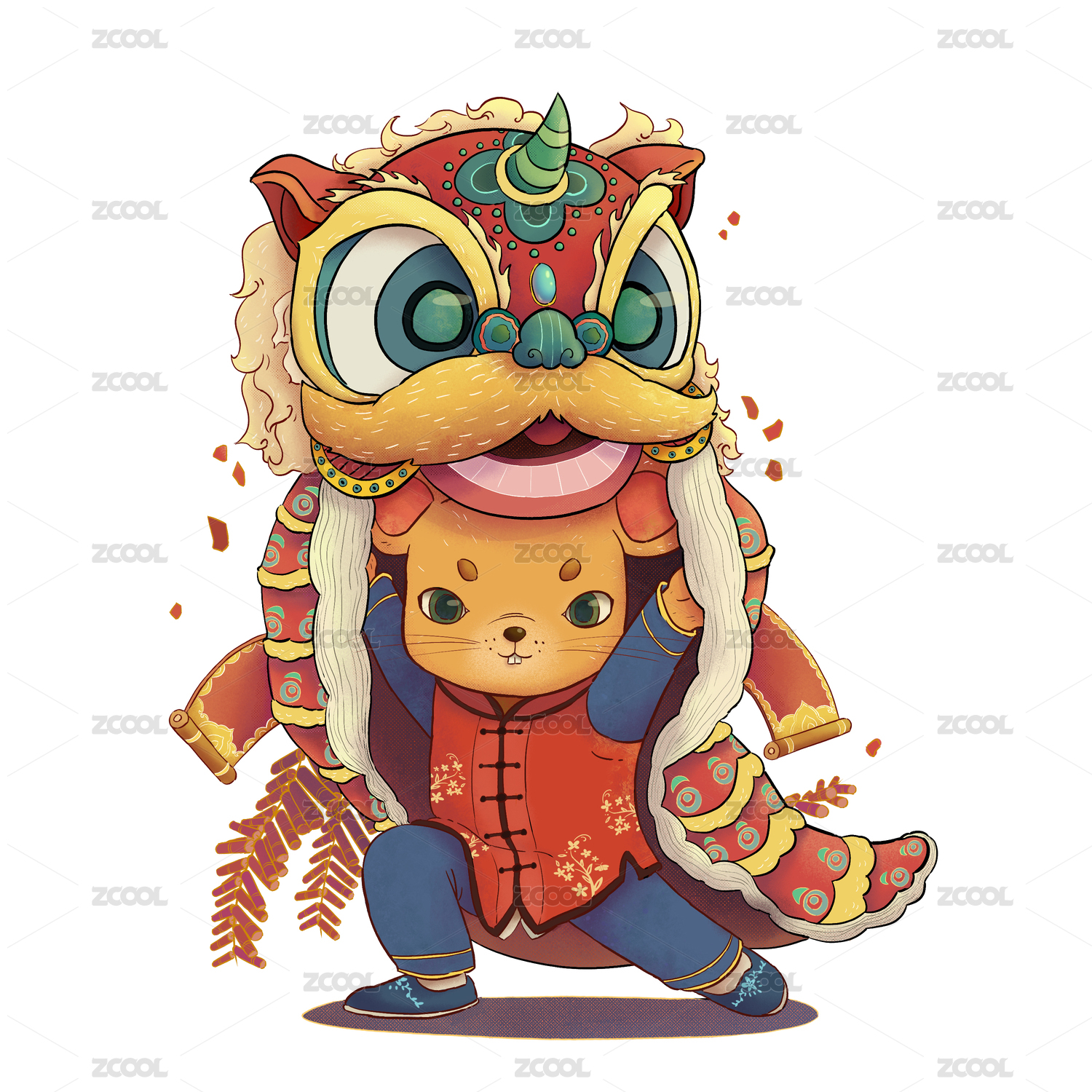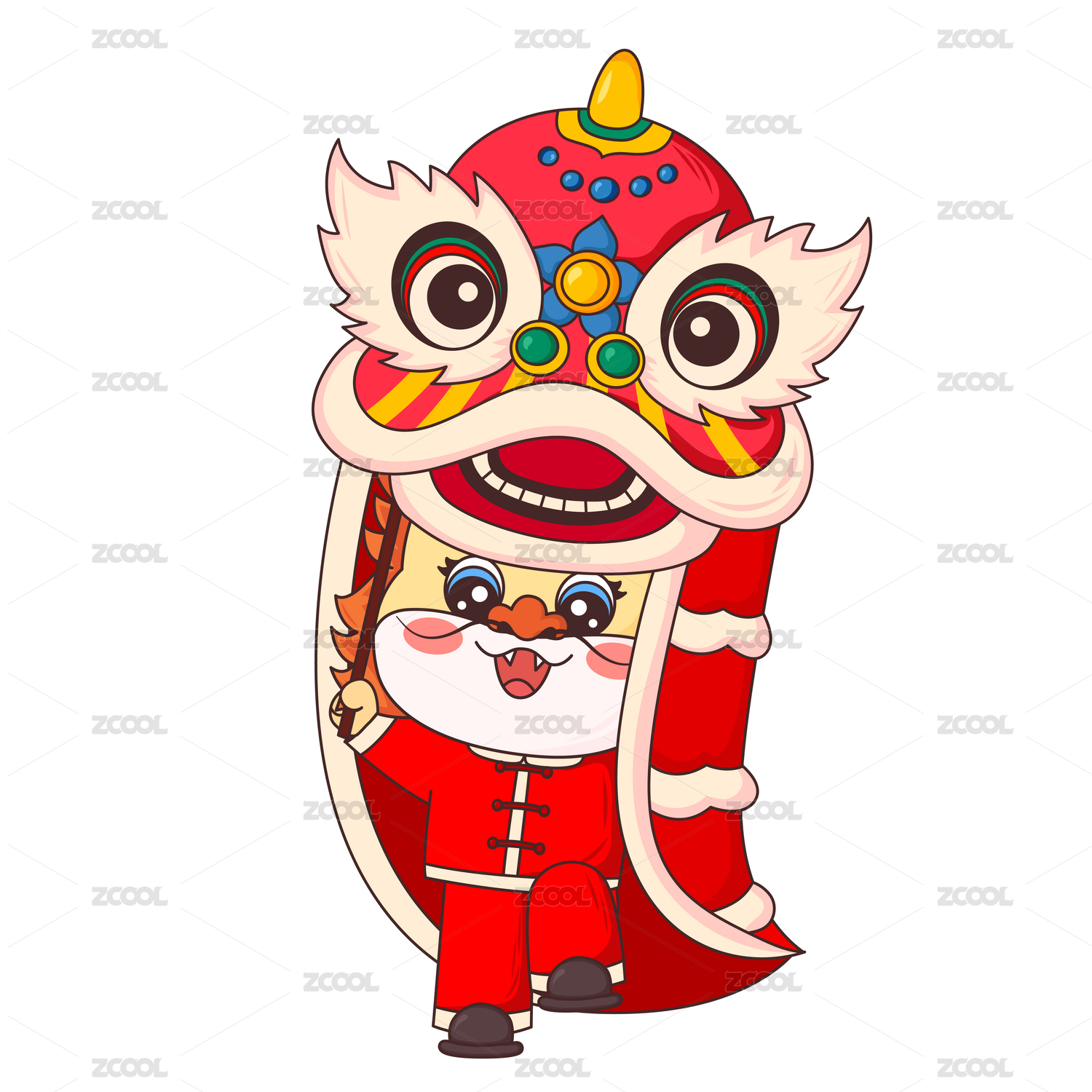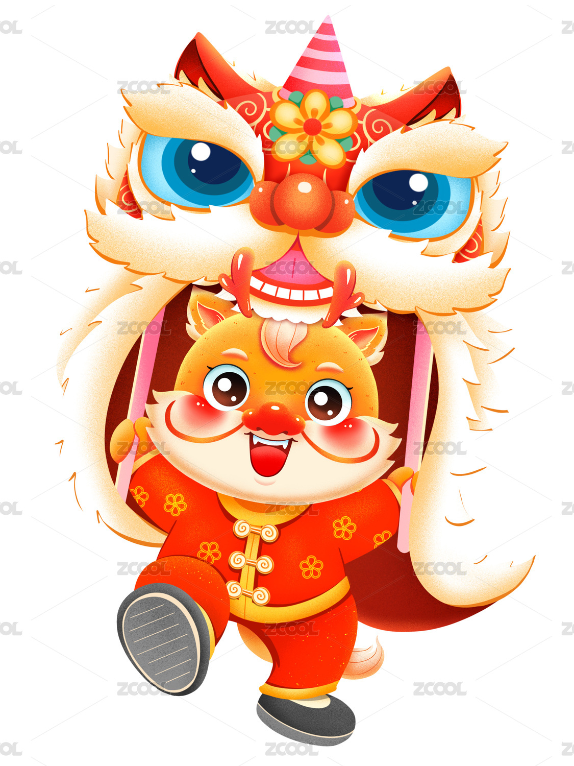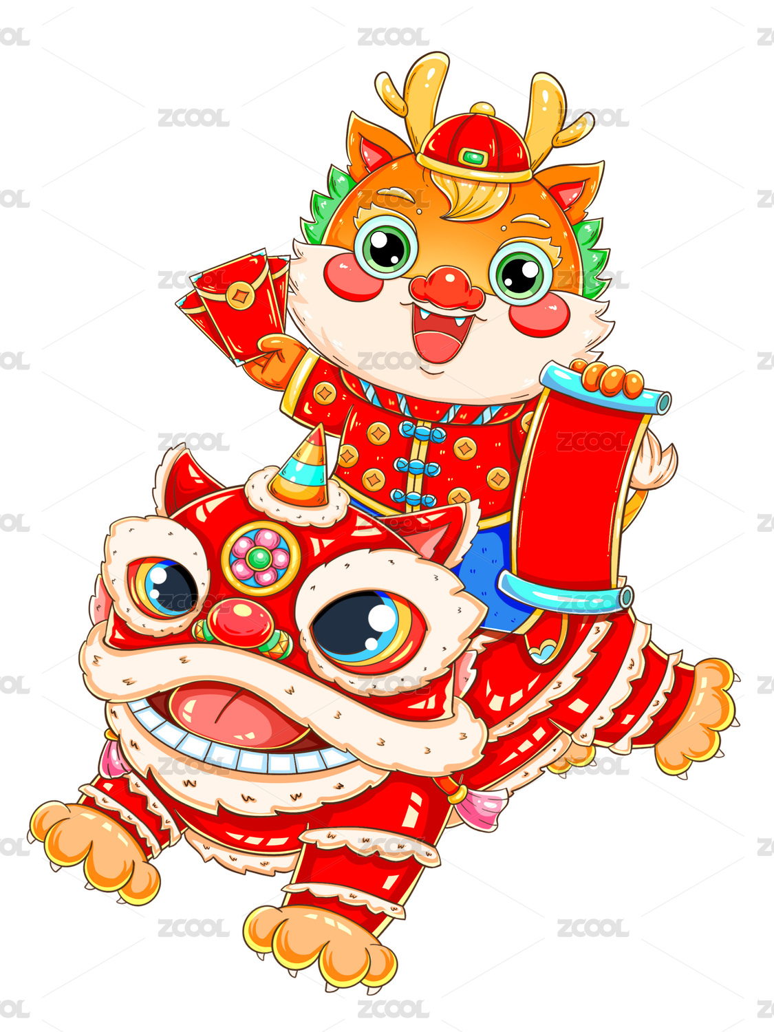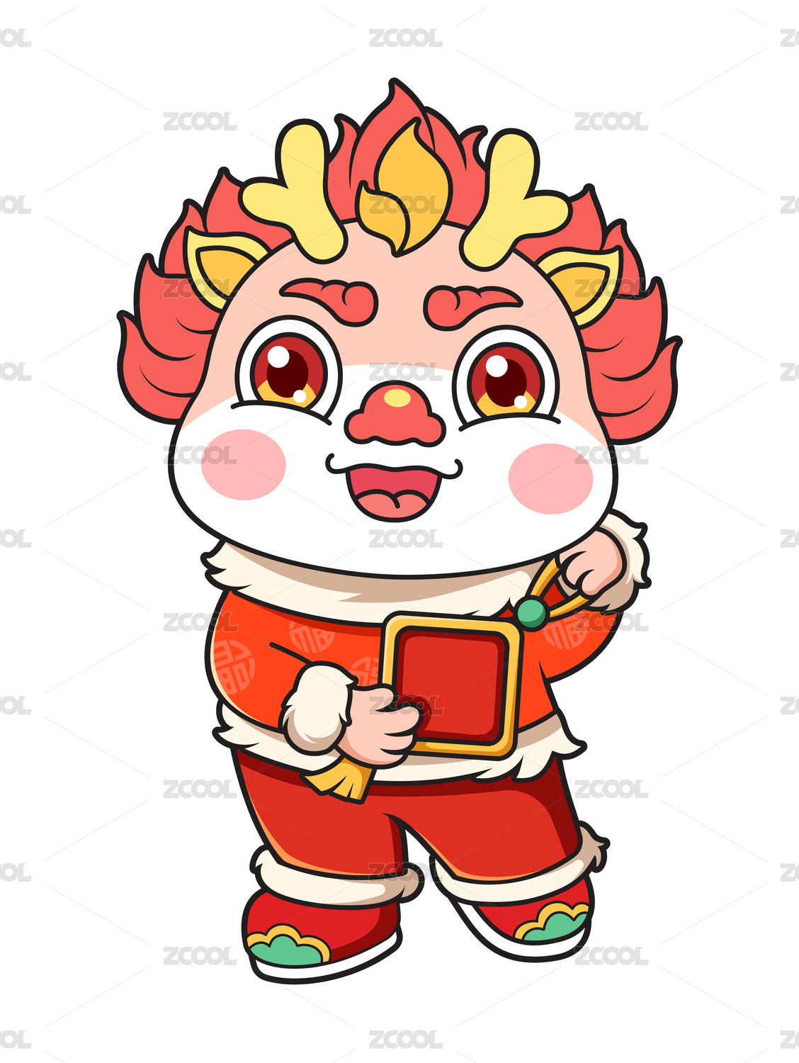 国潮新年春节龙红色龙头帽拜年福龙半身