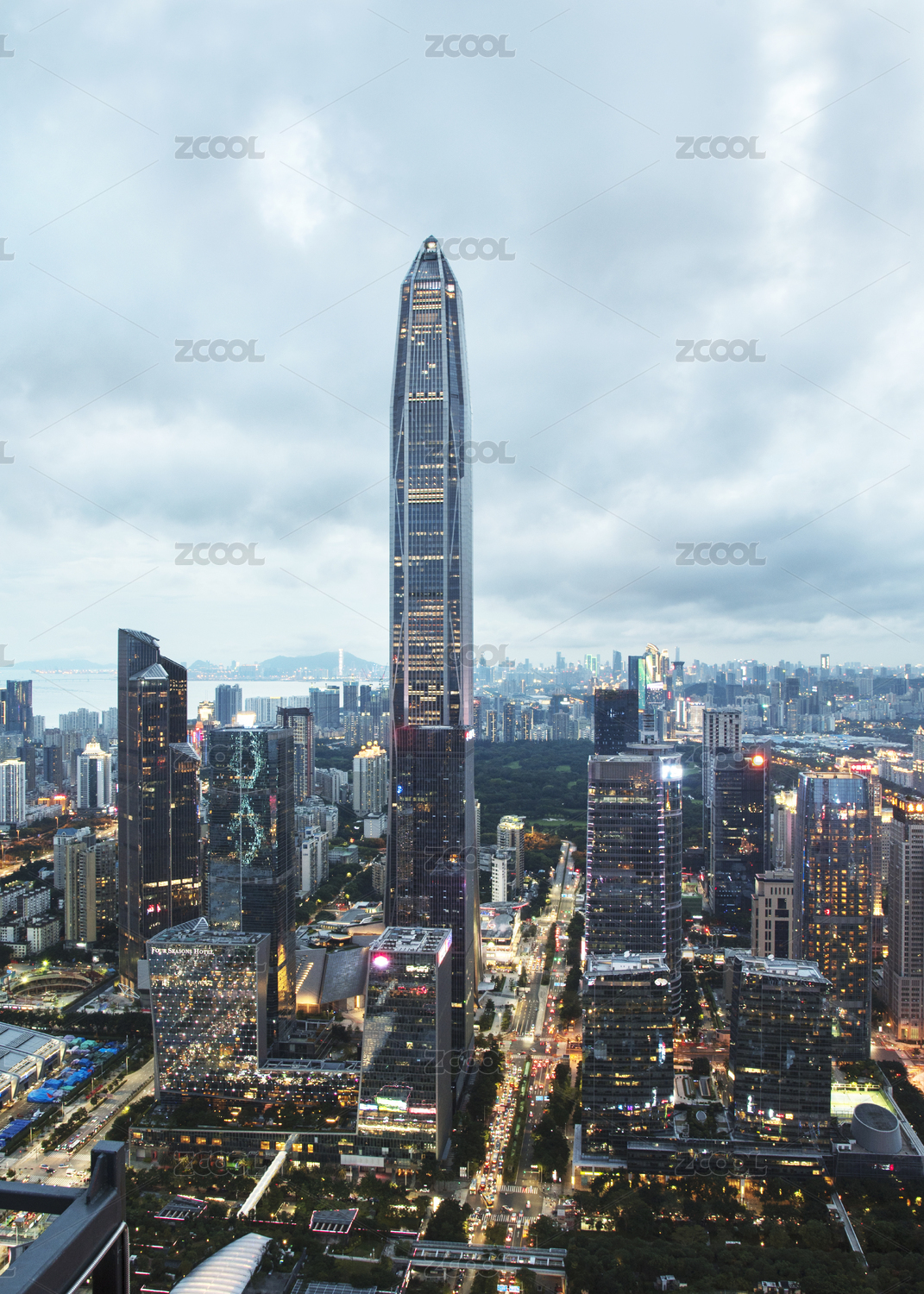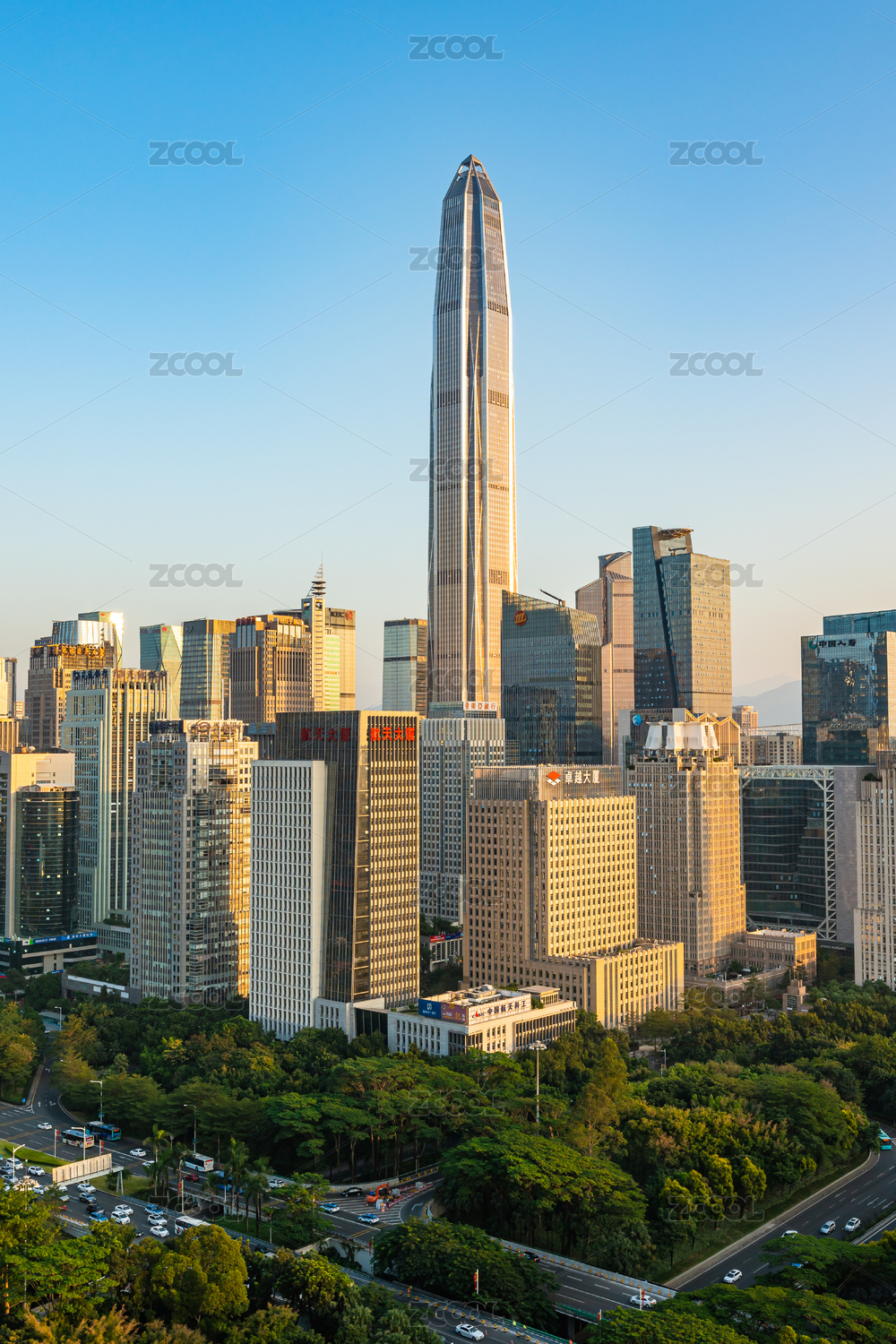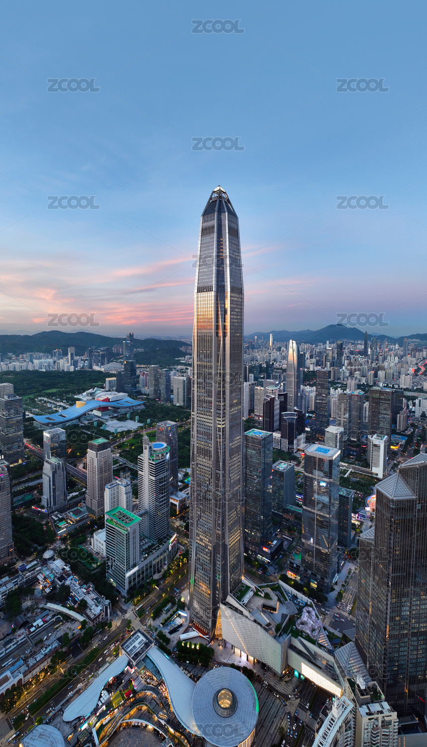 傍晚的中国深圳城市天际线建筑群高楼大厦风光,平安金融中心竖构图