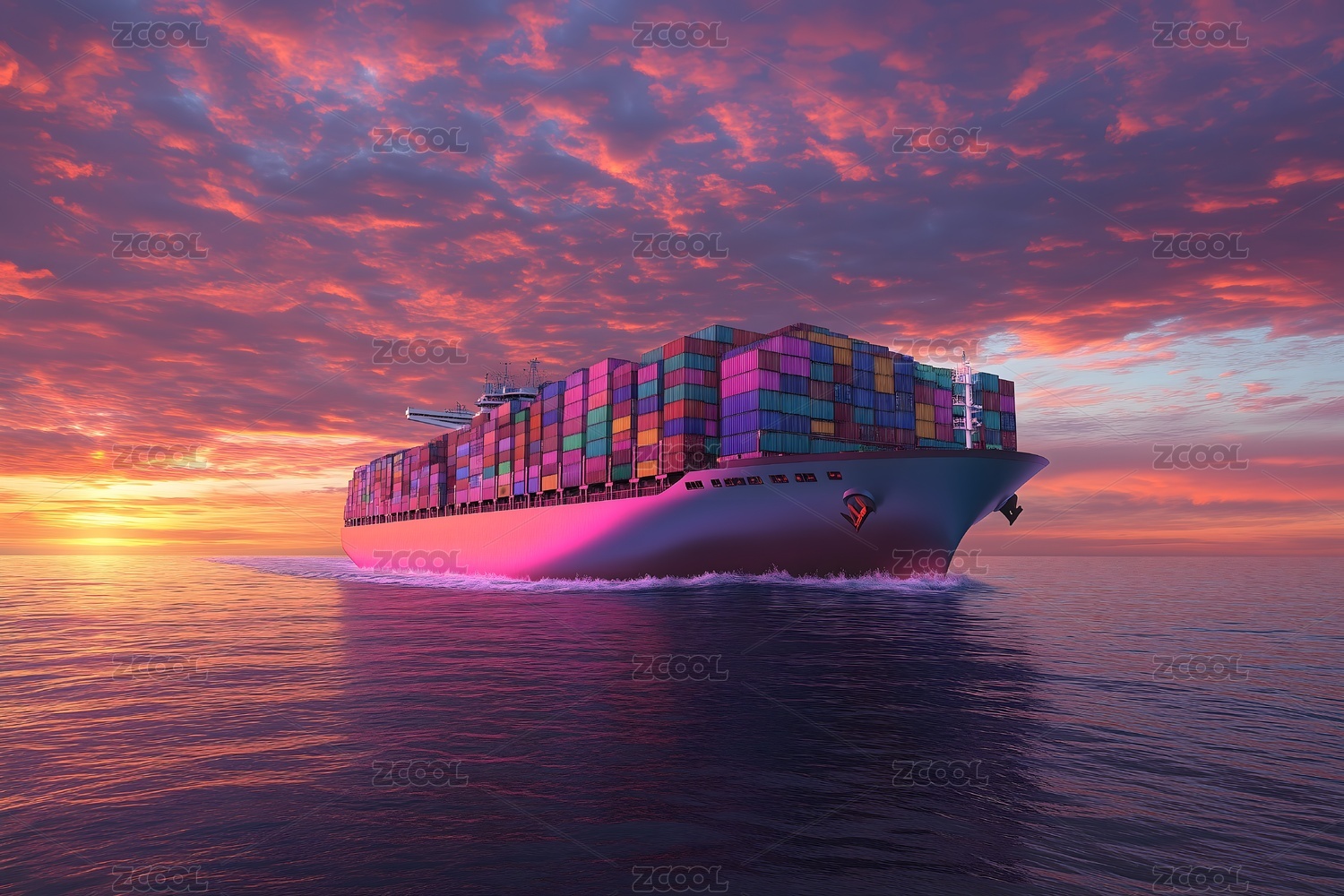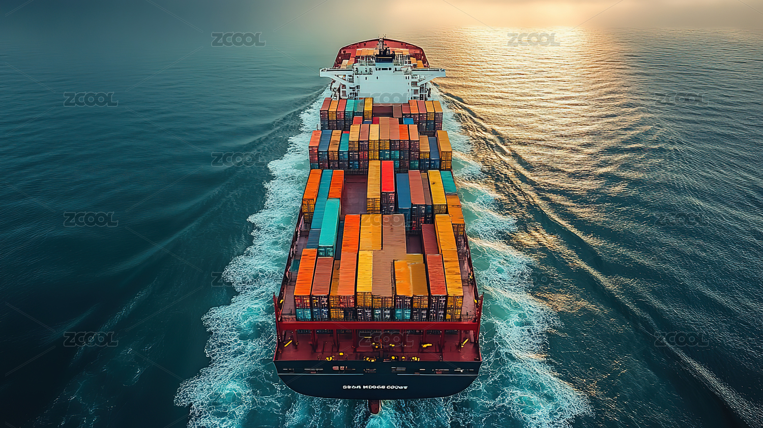 夕阳,货轮,轮船,船,行驶,大海,摄影,3D,波浪,集装箱