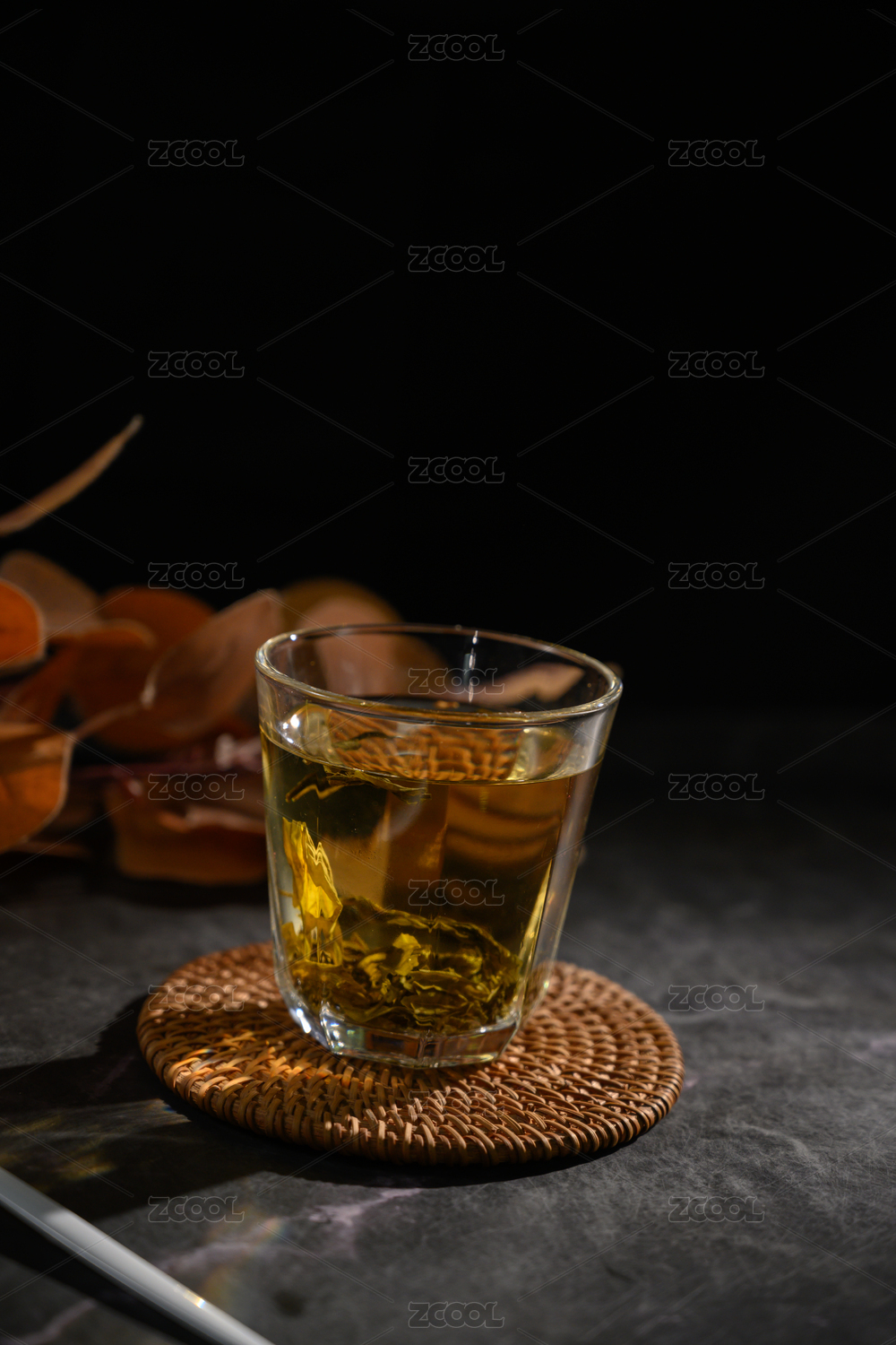 桌面上的杯子里的的甘甜可口的西洋参茶