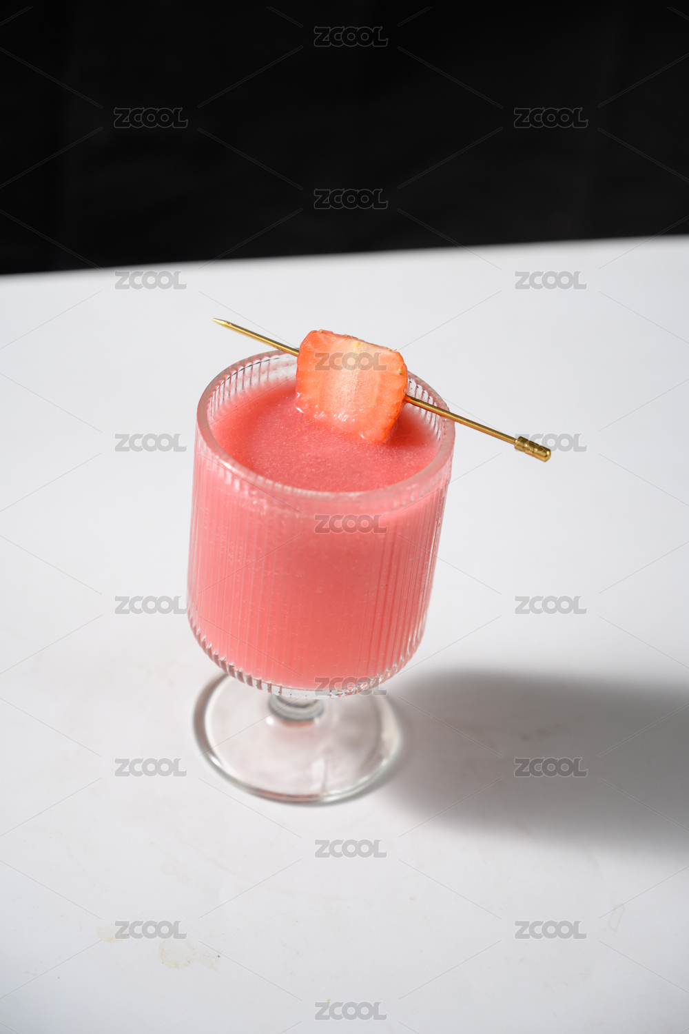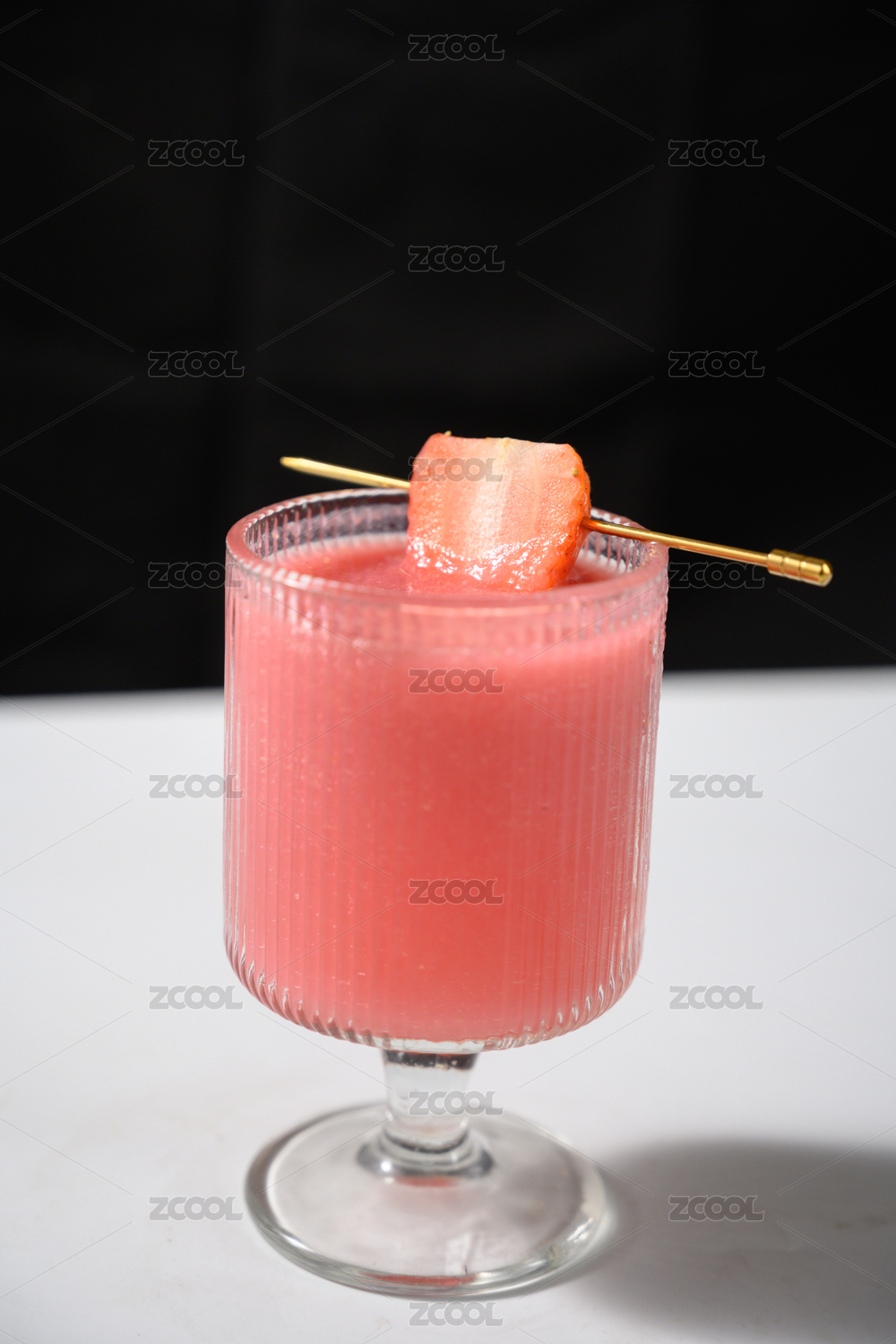 桌面上的杯子里的美味可口的草莓汁
