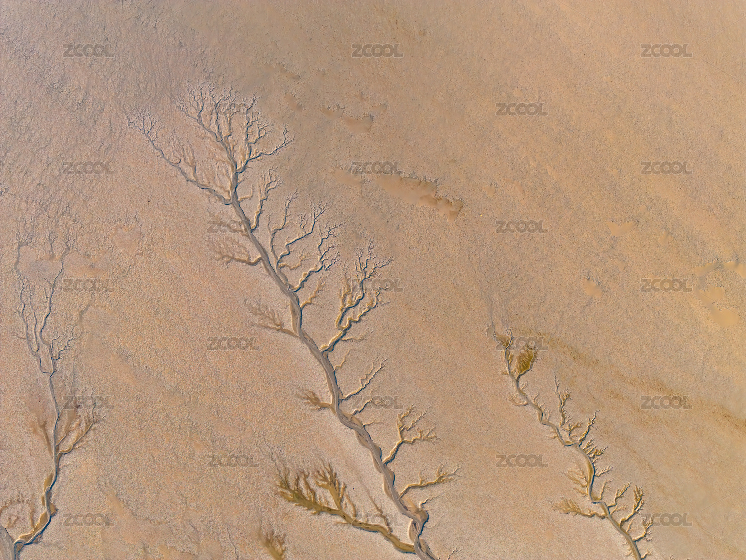 浙江钱塘江嘉兴段退潮后潮汐树航拍自然风光