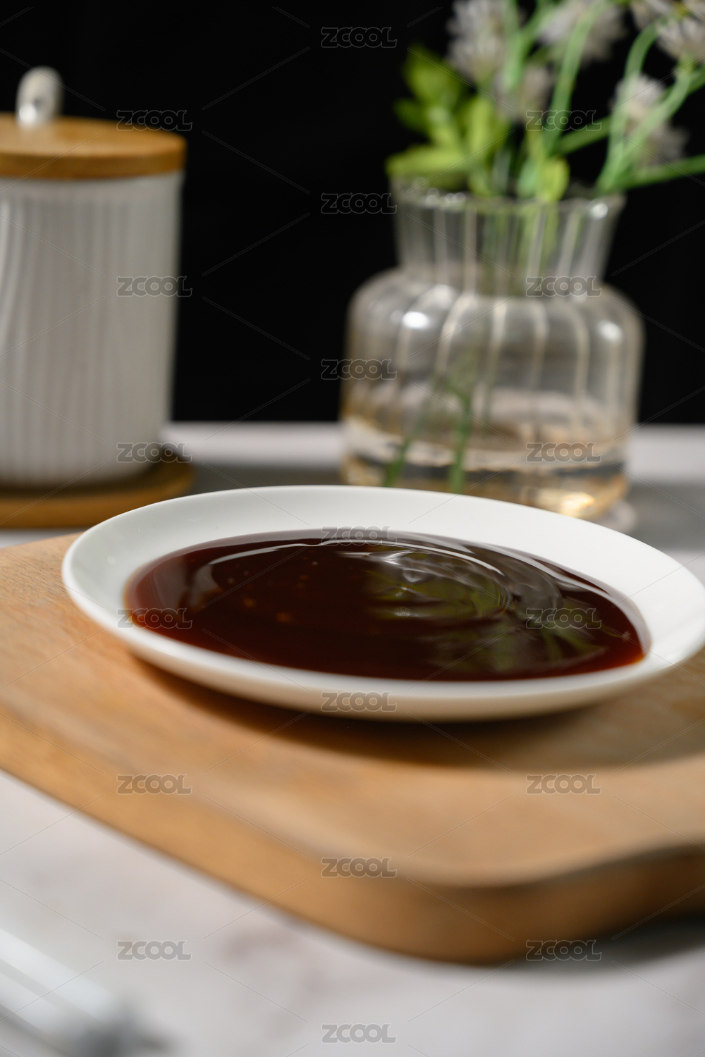 桌面上的盘子里的美味可口的蚝油