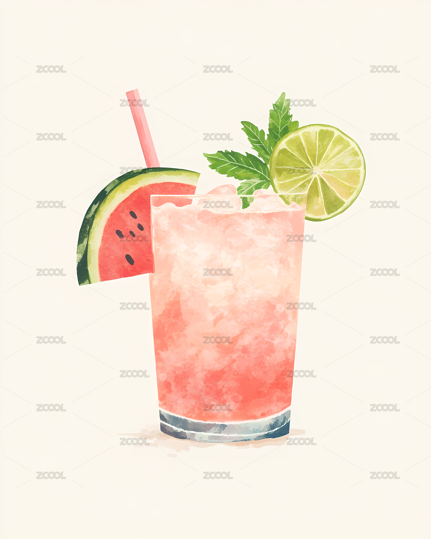 原创手绘小清新水彩饮料插画