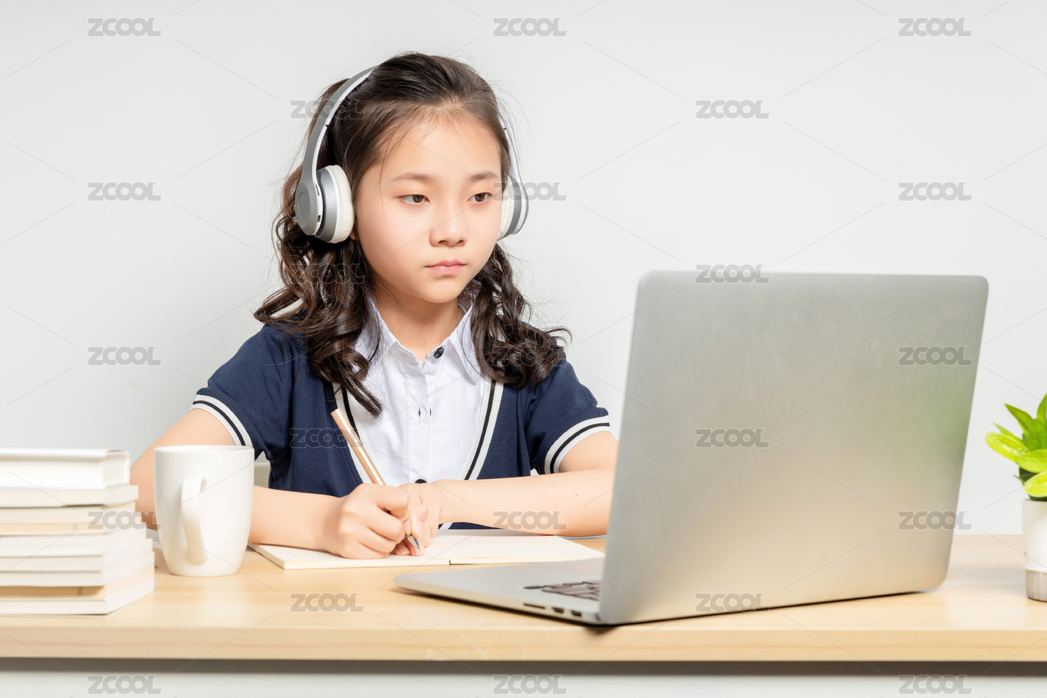 正在上网课的亚洲小学女生