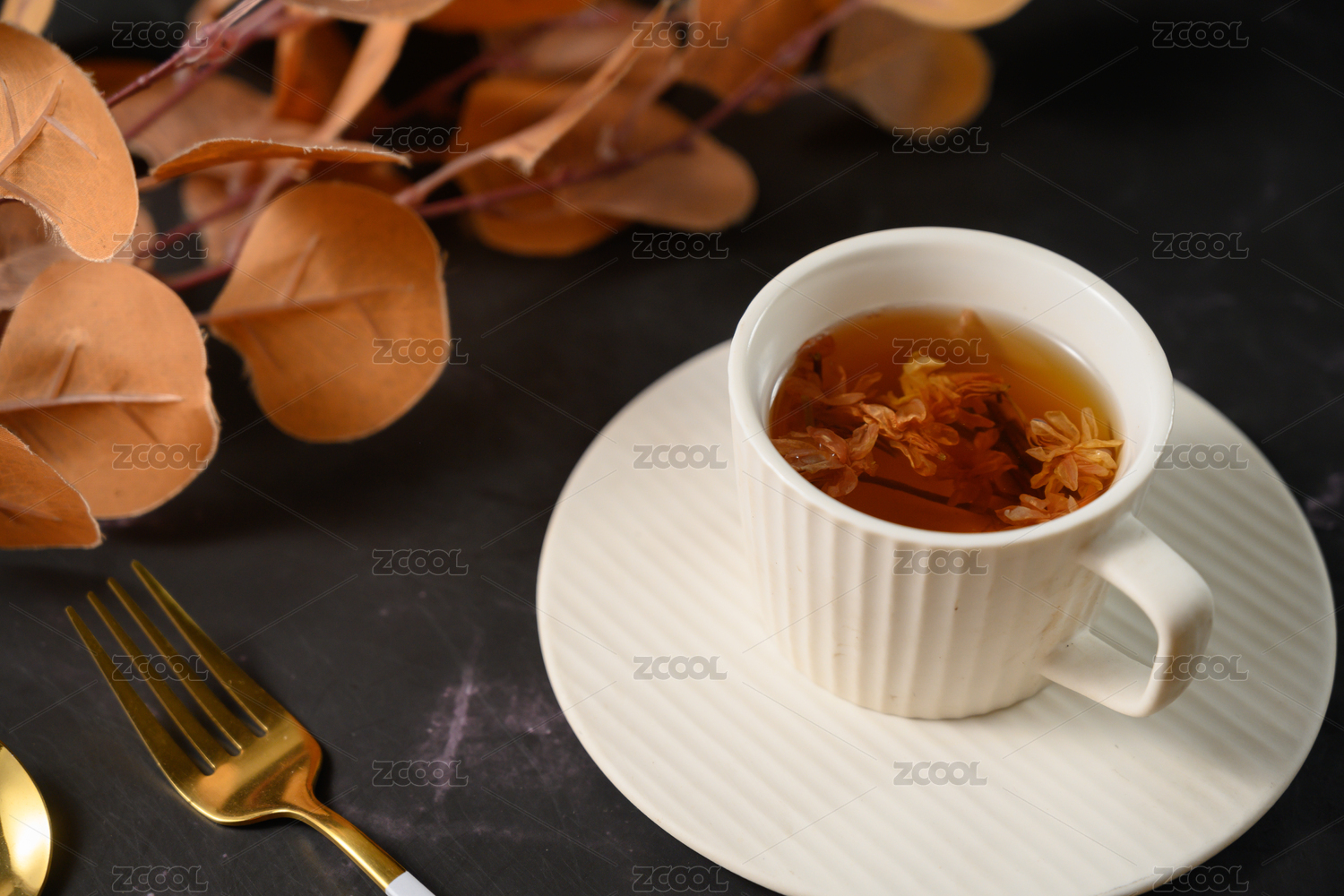 桌面上的杯子里的甘甜可口的胰岛果茶