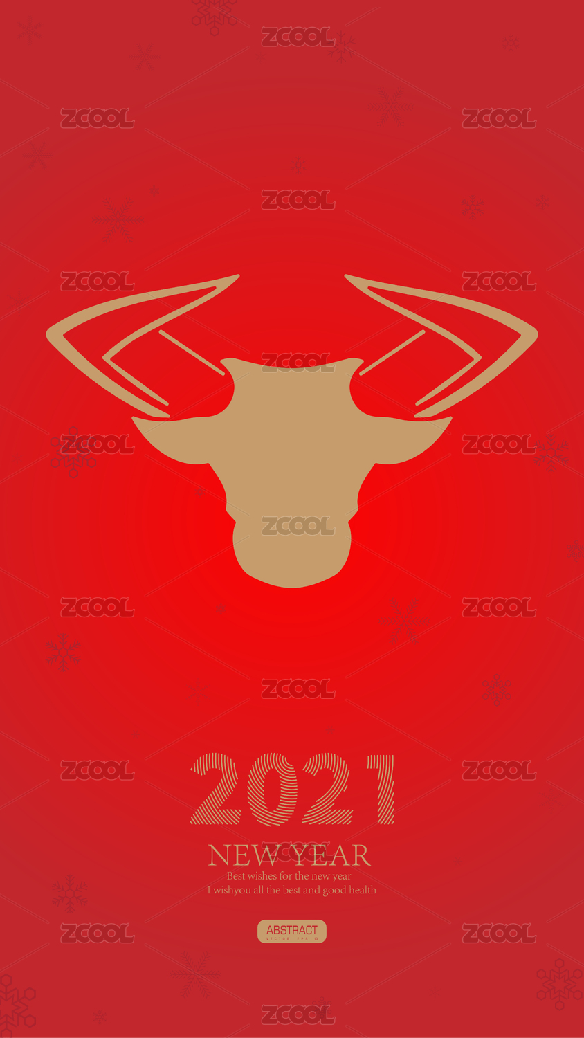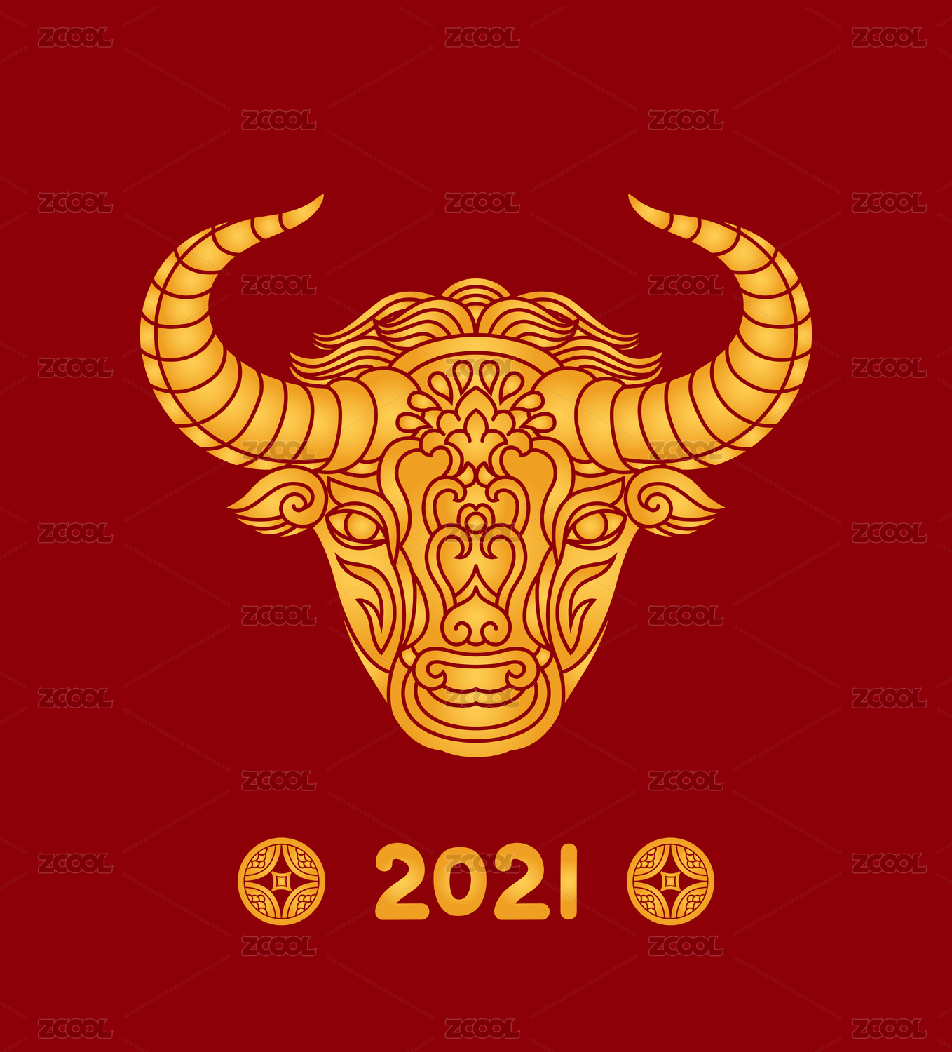 2021金色牛头图案,红色喜庆背景