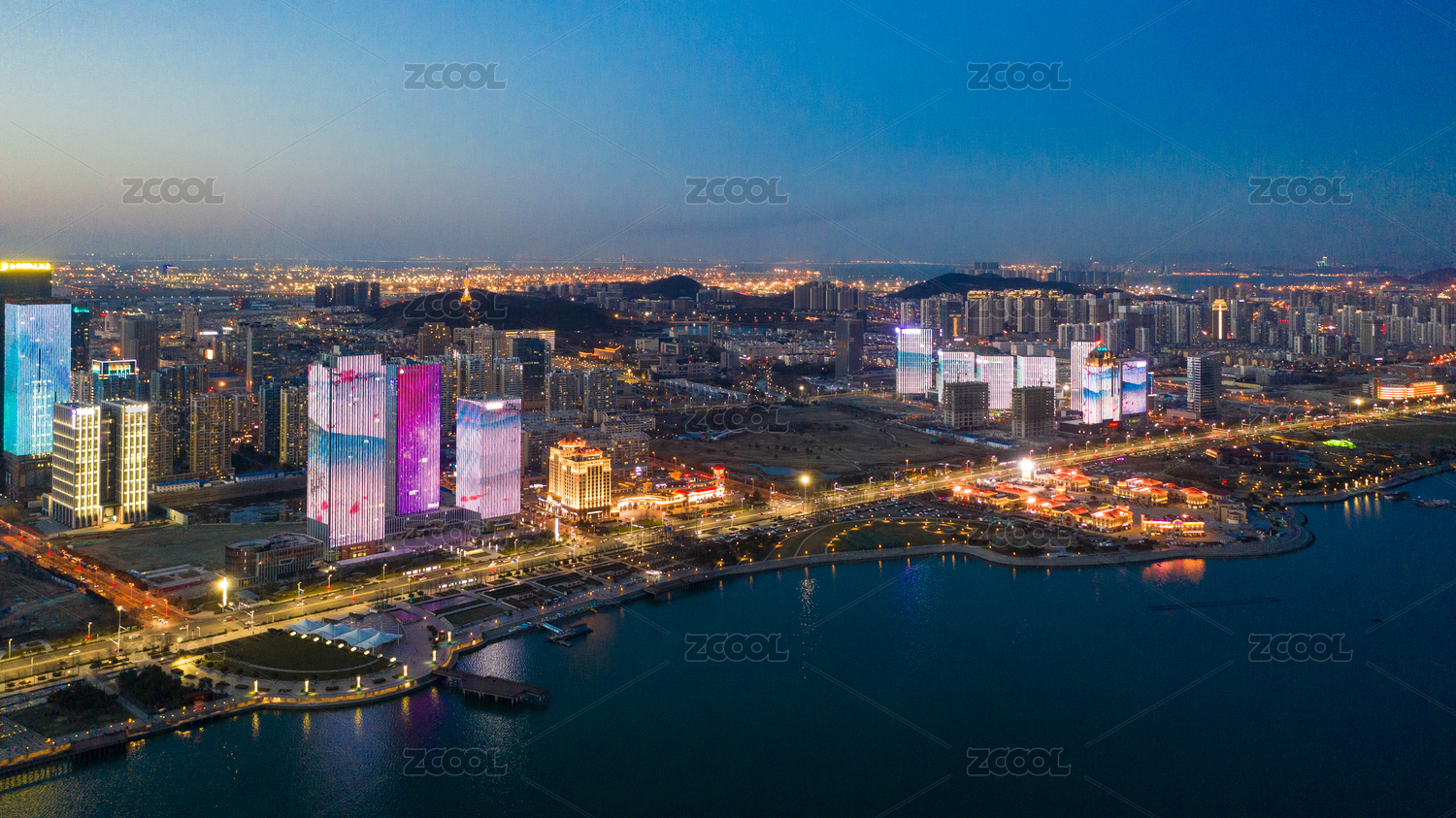 青岛城市风光夜景航拍