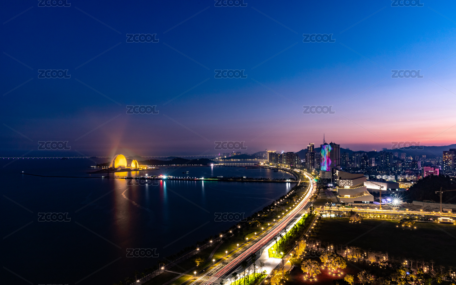 夜幕下的珠海情侣路