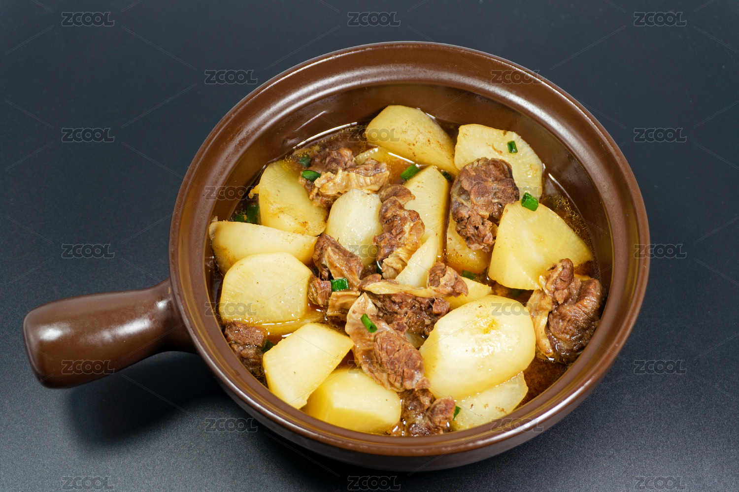 黑色背景广东传统特色菜罗卜炖牛腩