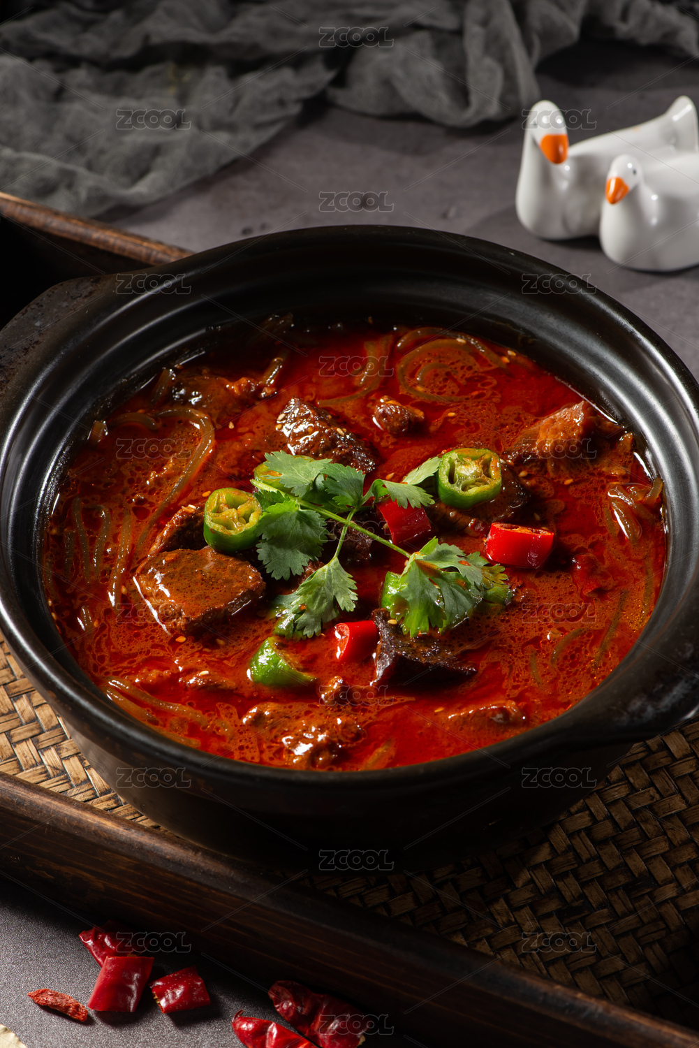 螺蛳粉的汤底制作用勺子舀起螺蛳
