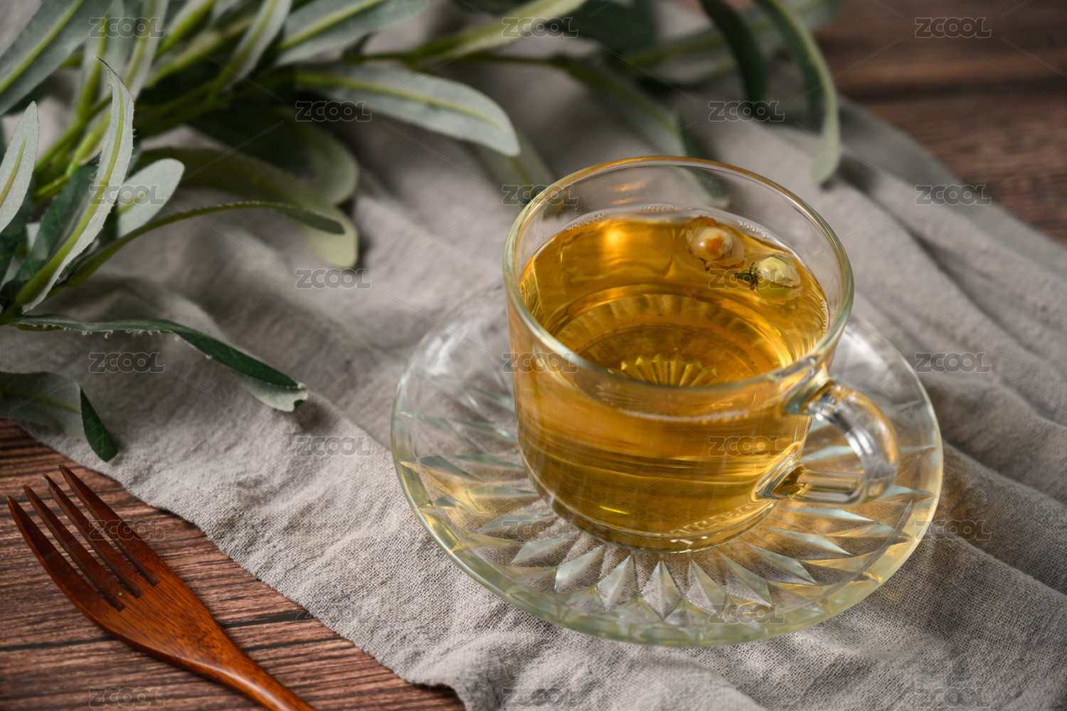 桌面上的杯子里的甘甜可口的陈皮白茶