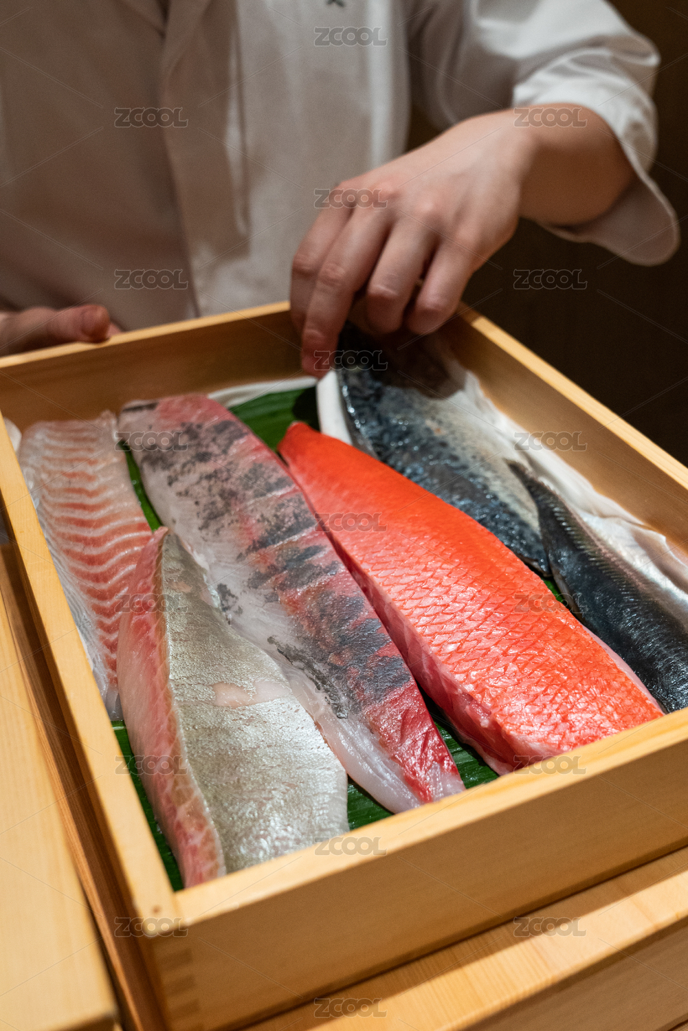 板前厨师在准备生鱼片