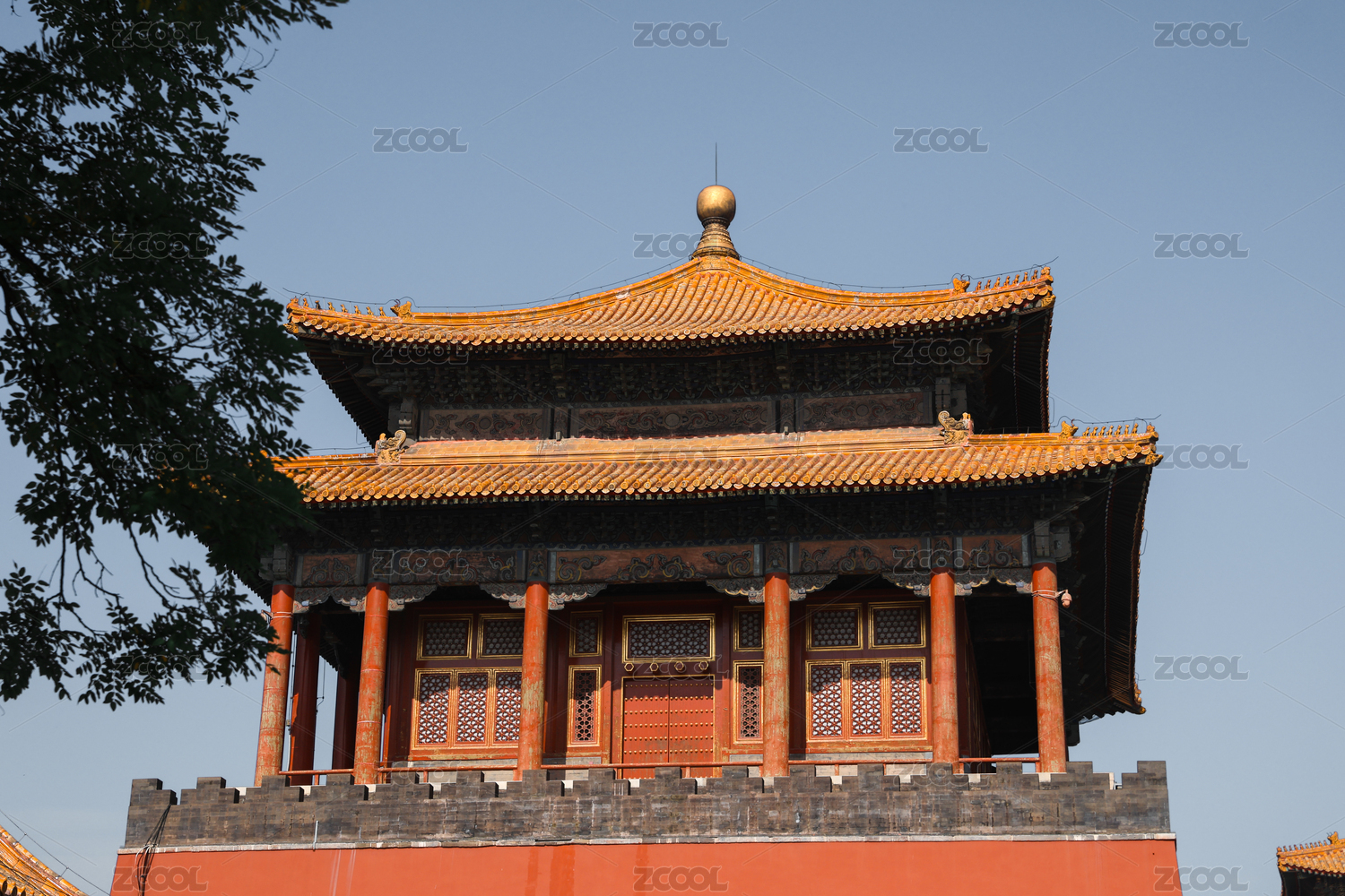 中国北京颐和园古建一角—飞檐彩绘描金万字纹龙纹