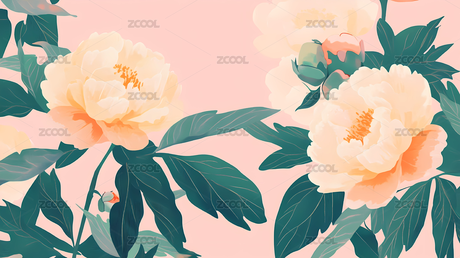 浅色牡丹花卉背景