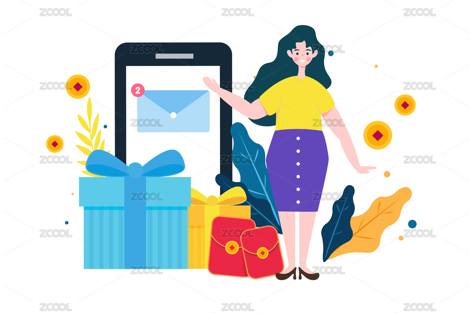 扁平风格38女王节礼盒矢量插画