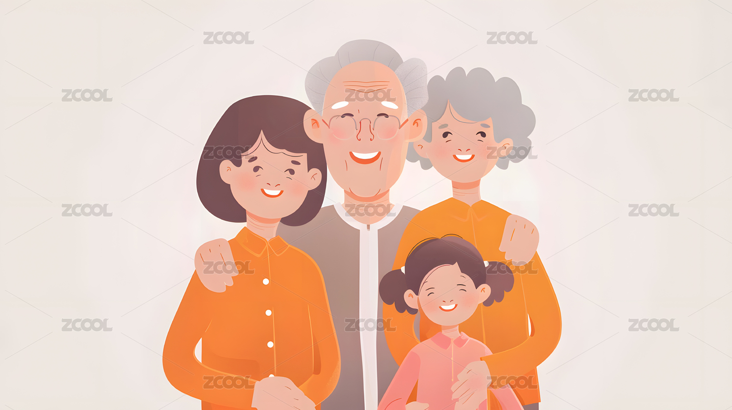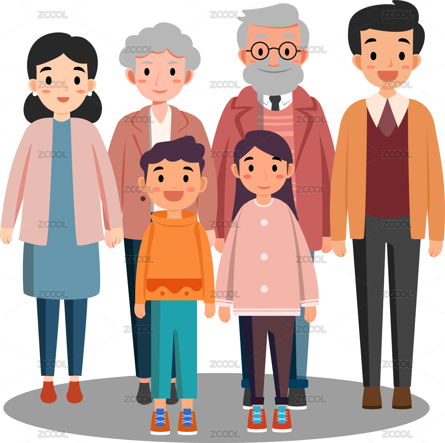 爷爷奶奶和孙子孙女卡通儿童扁平风插画