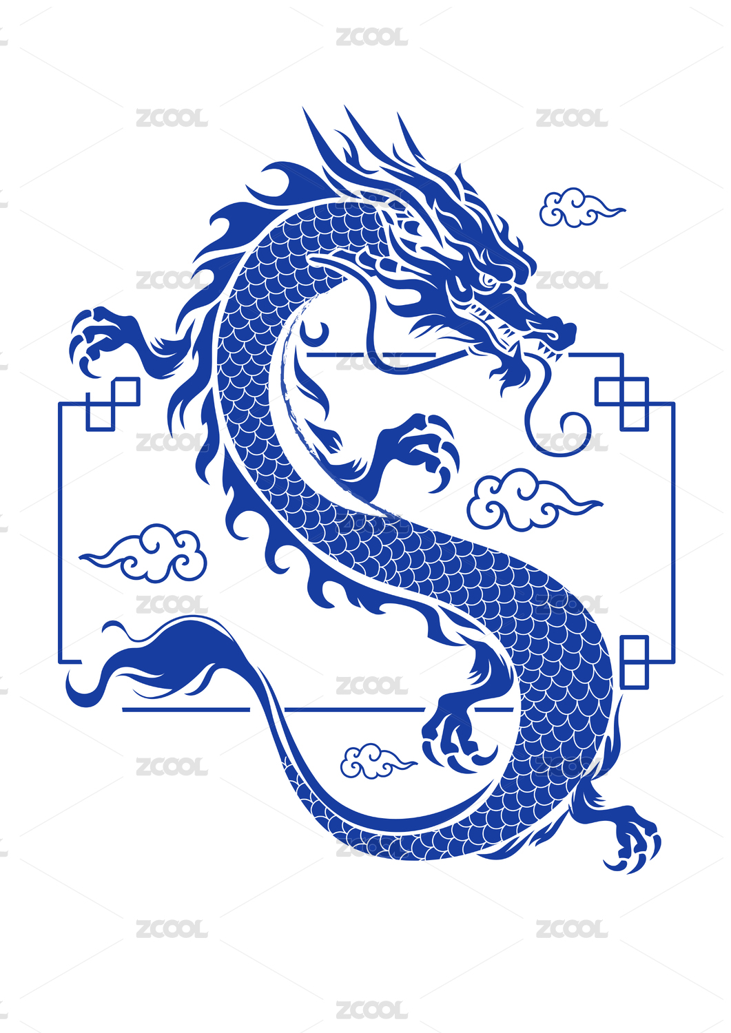 传统中国龙剪纸风插画