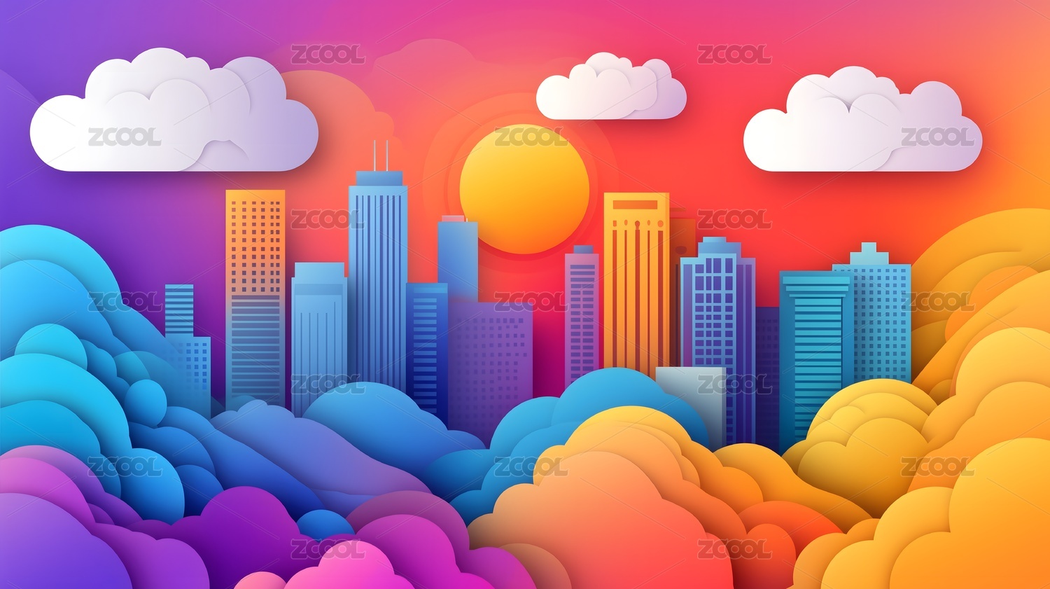 傍晚的城市插画背景