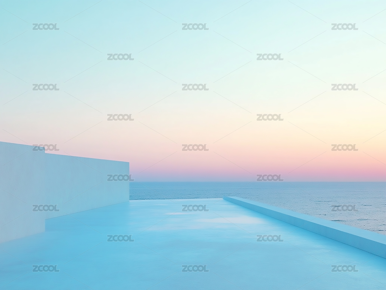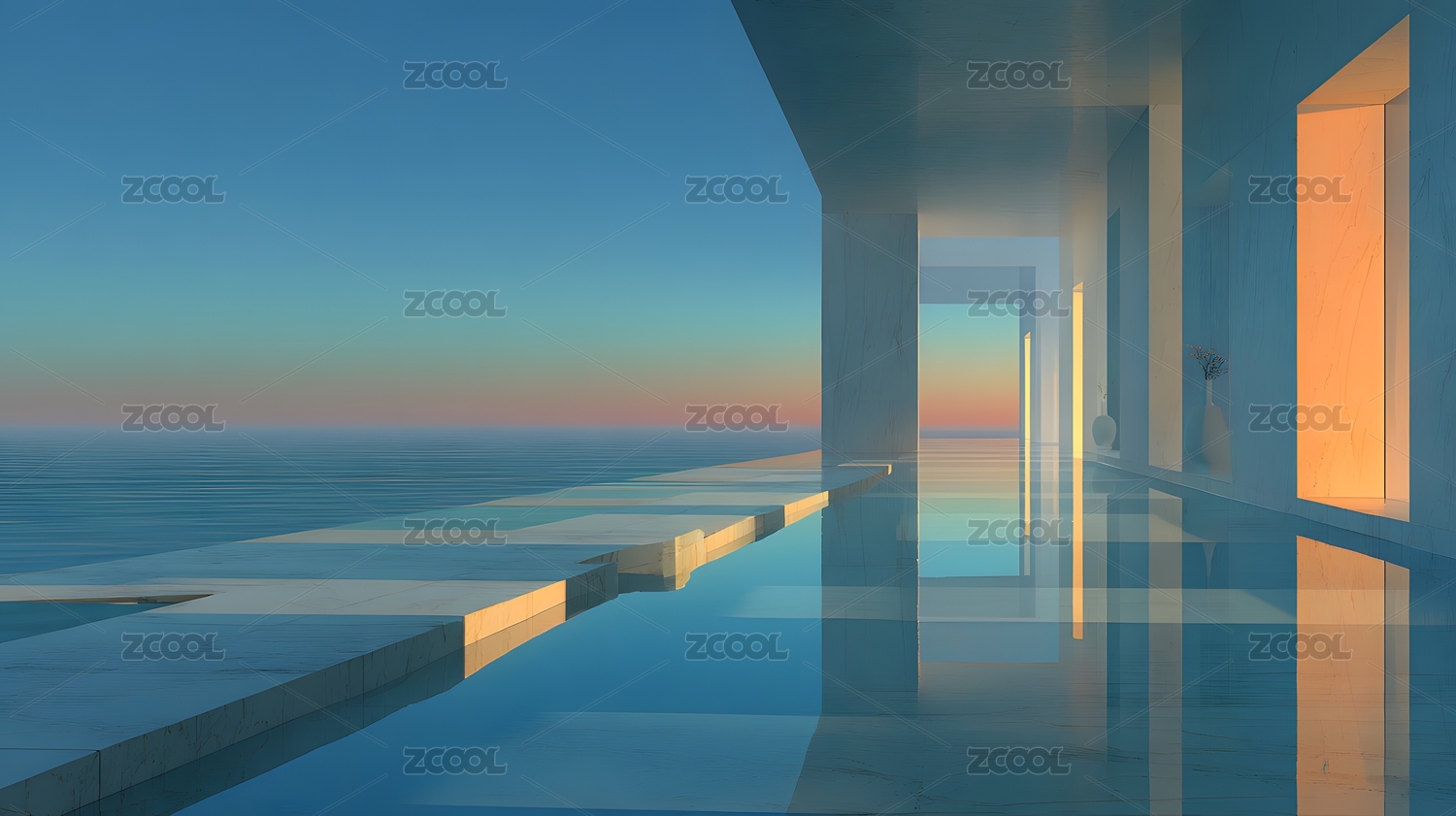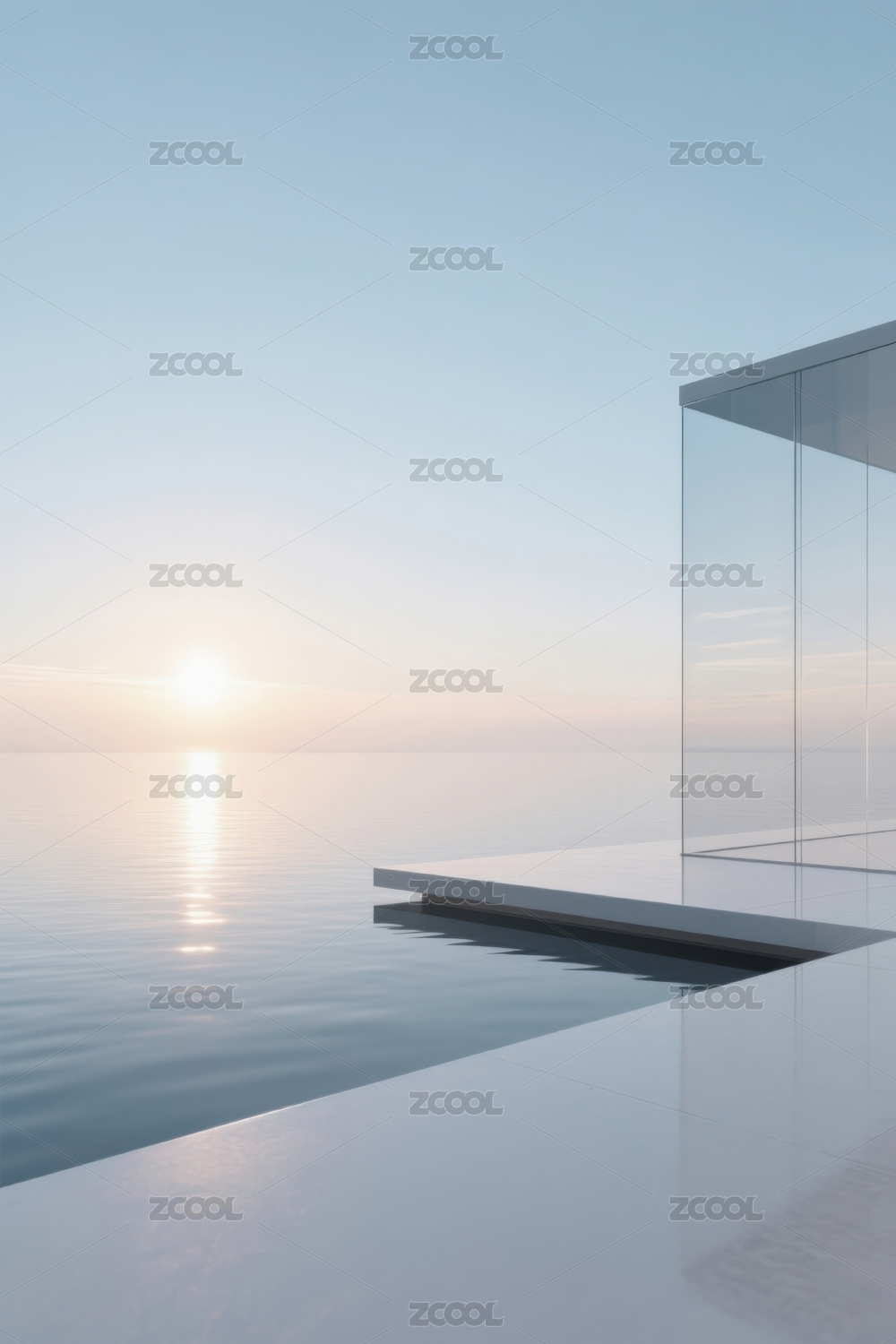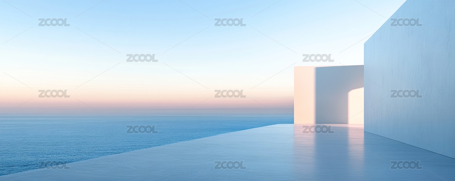 极简建筑与海面日出