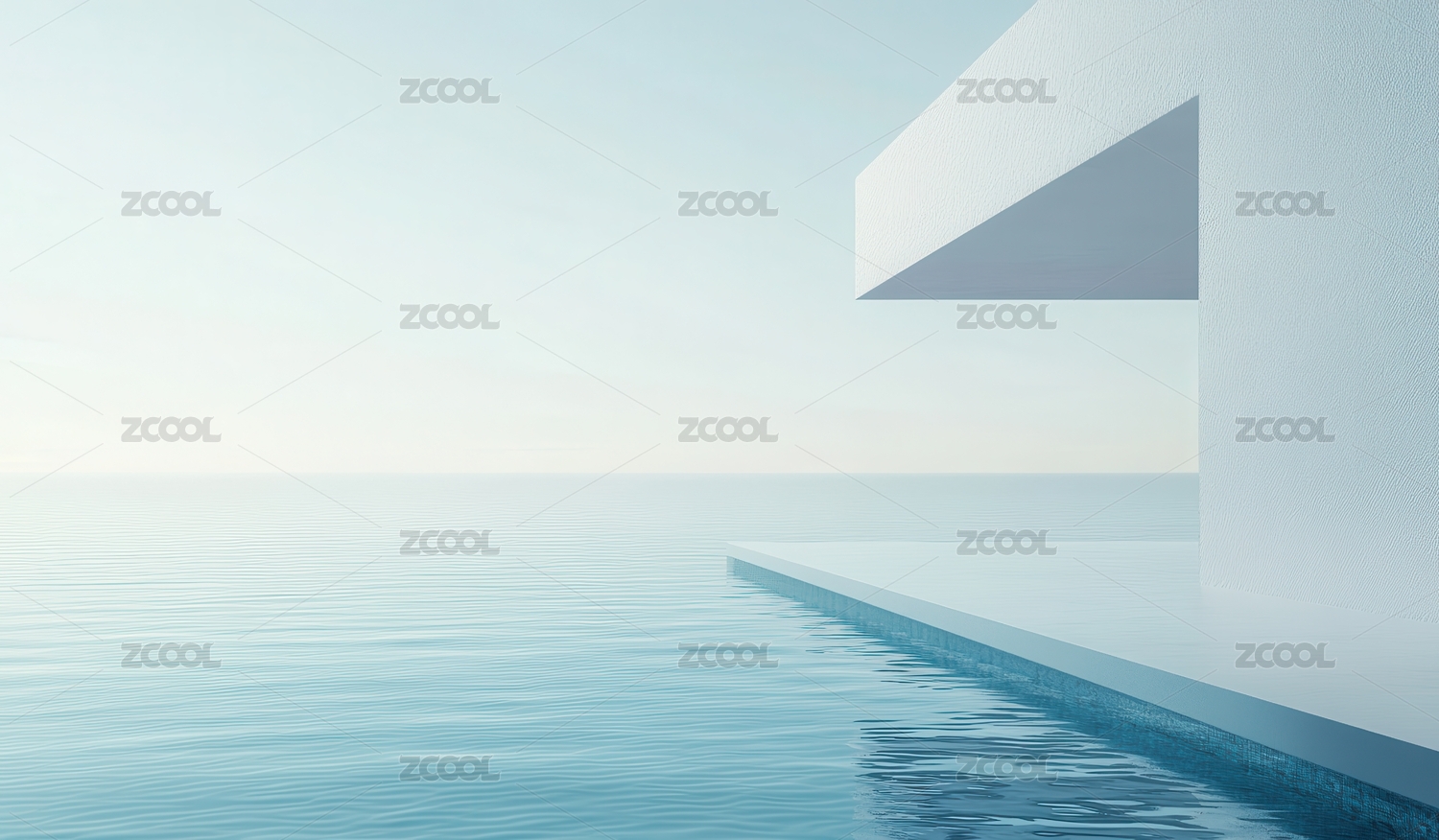 现代抽象建筑和水面
