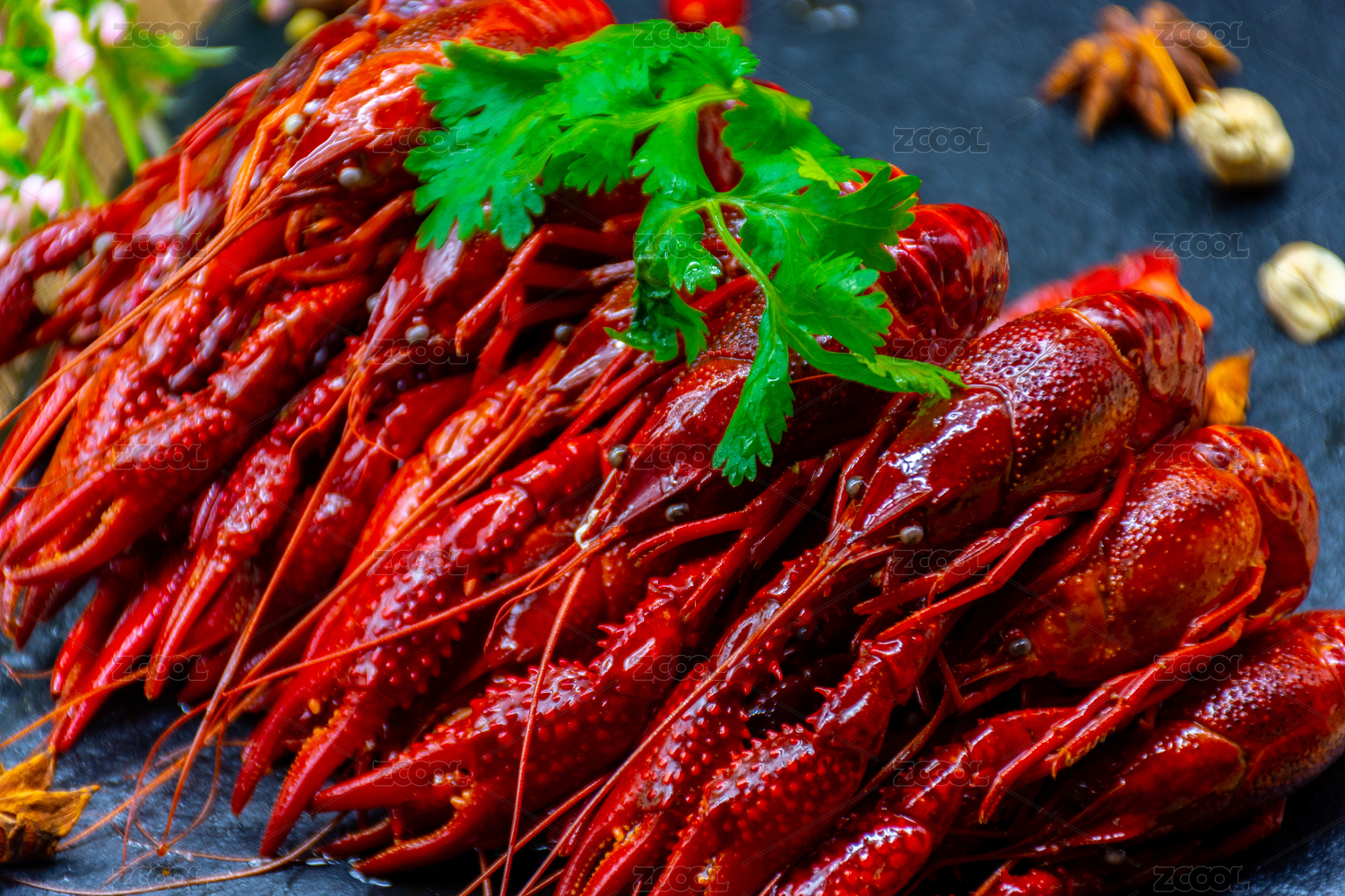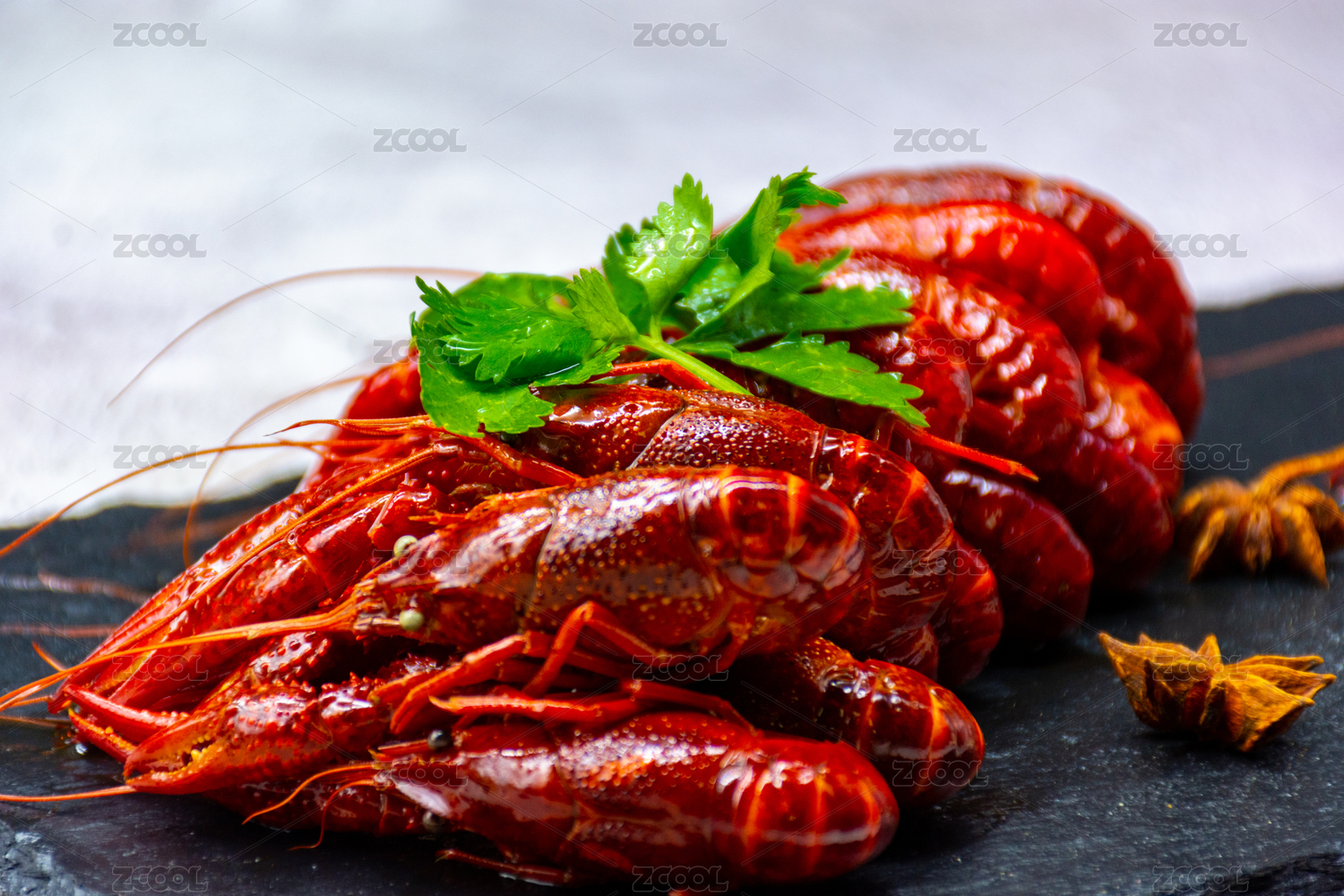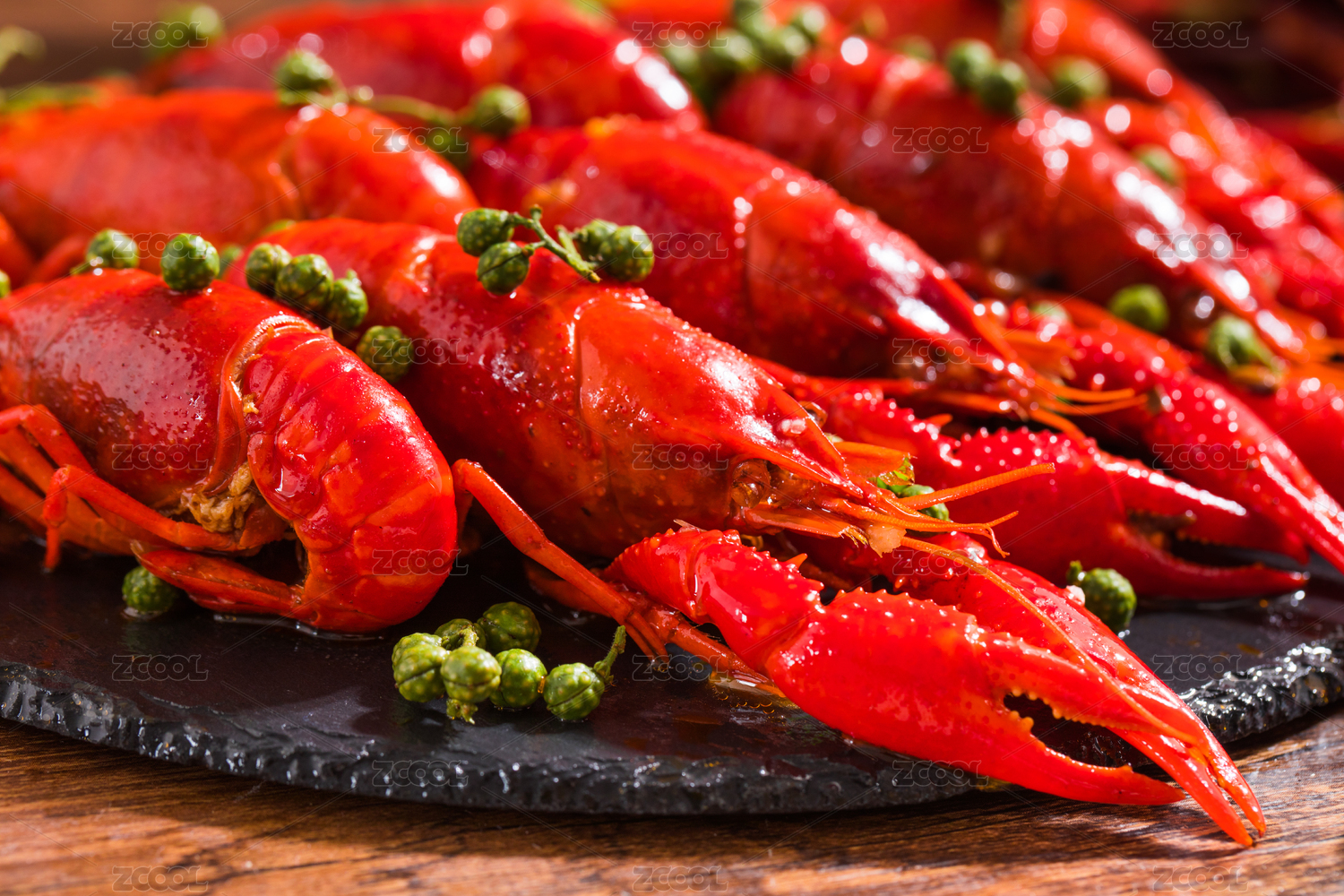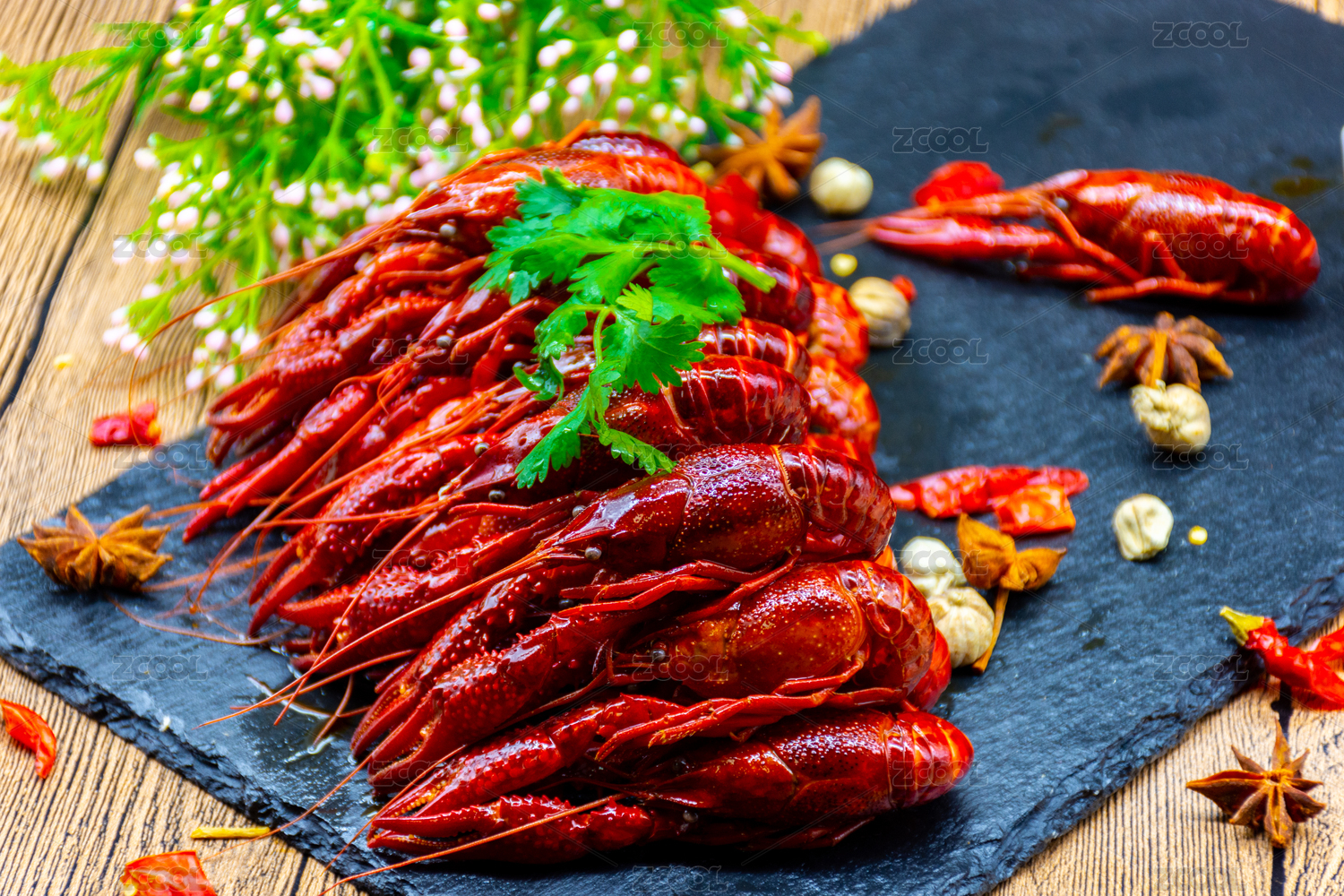 黑色圆石板上的藤椒味的麻辣小龙虾