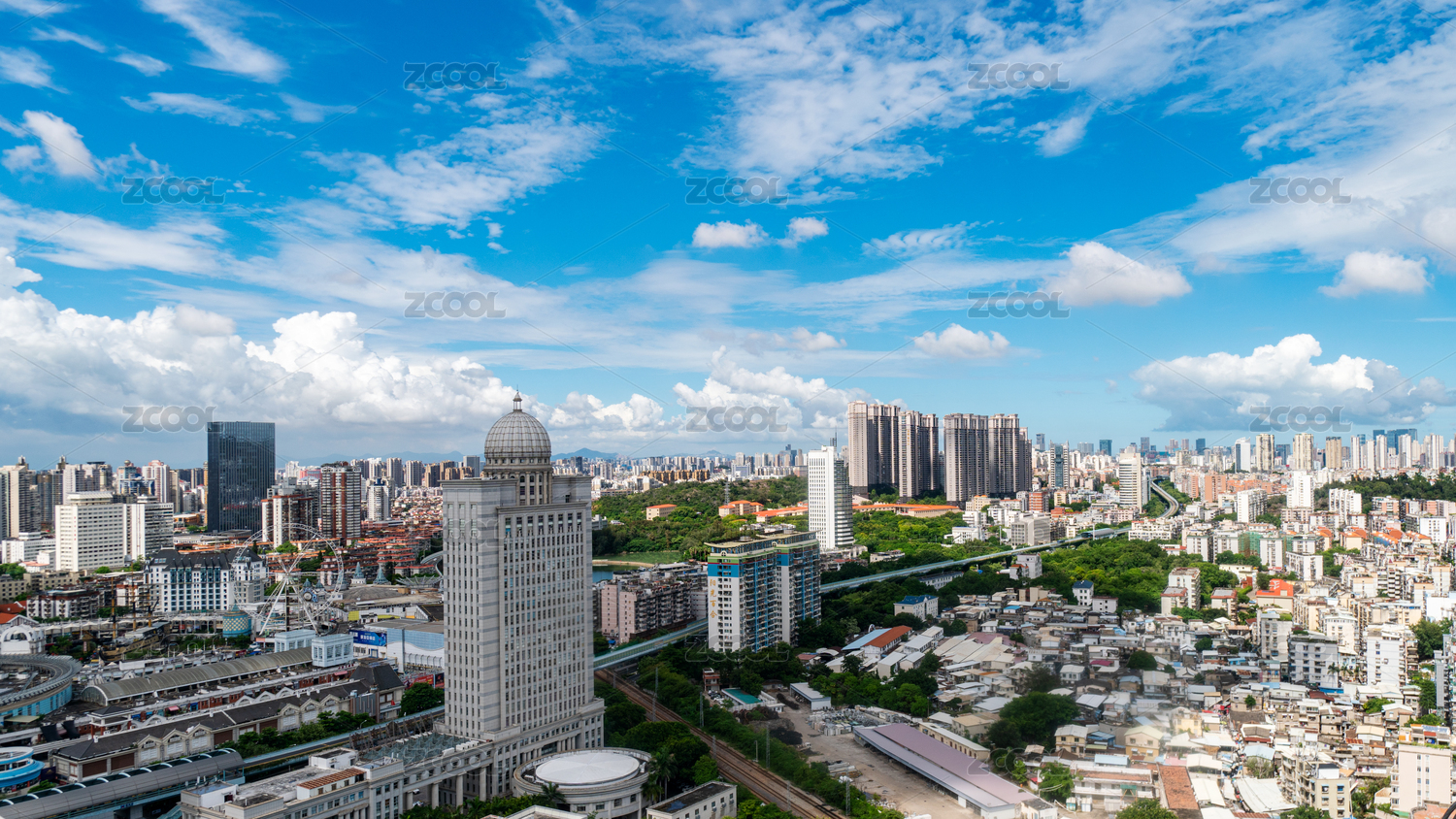 蓝天白云下的中国广东省中山市城市风光