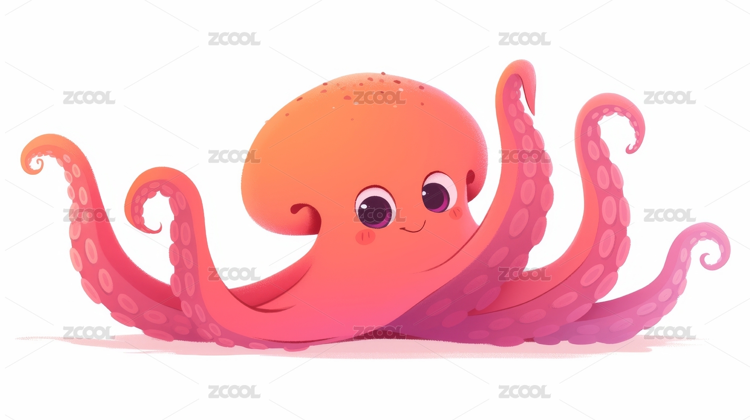 章鱼可爱唯美野生动物3D卡通插画壁纸