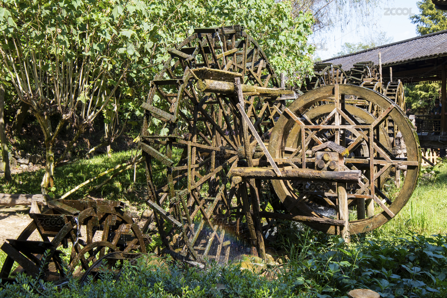湖南张家界黄龙洞景区的水车特写