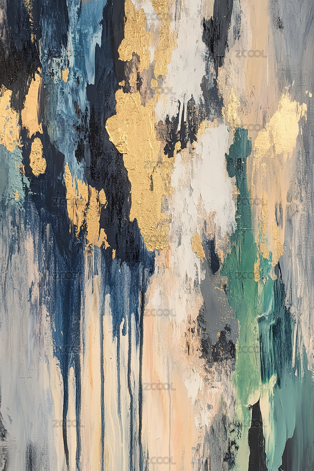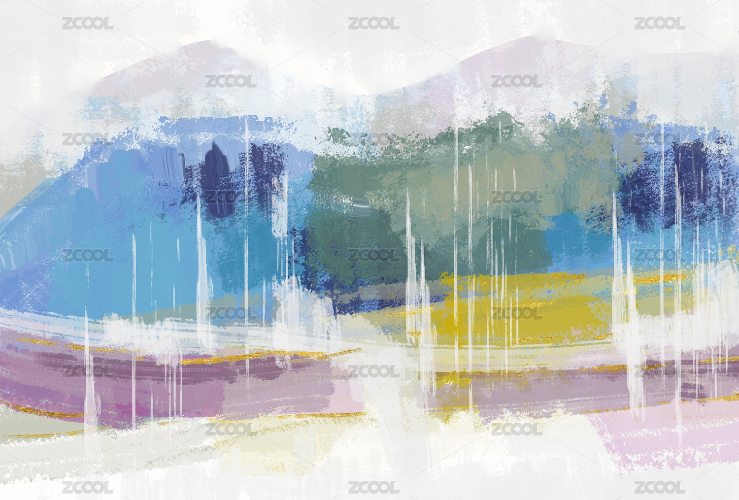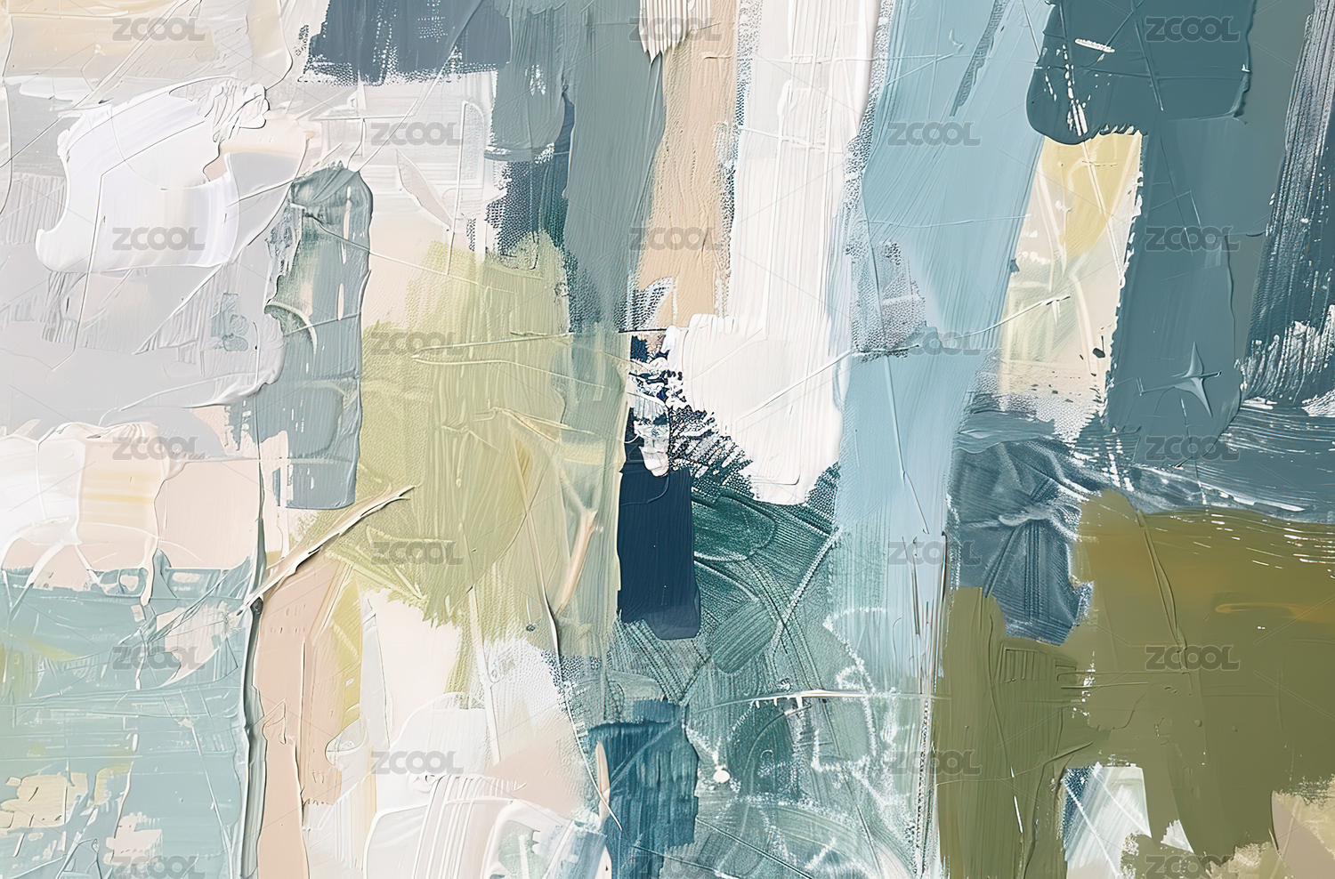 手绘抽象印象油画写意冷色调艺术背景装饰画