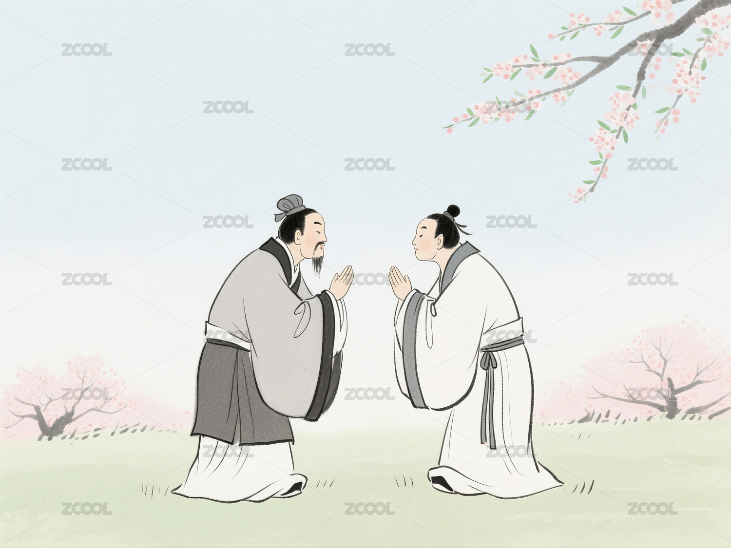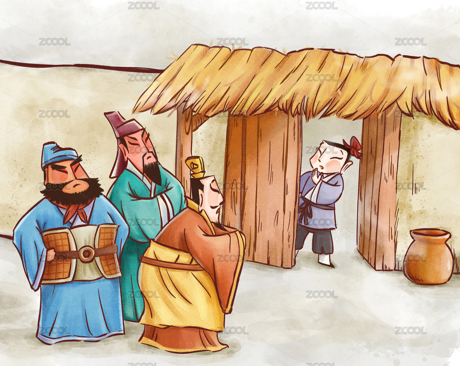 卡通中国风三国关羽张飞刘备喝酒桃园结义