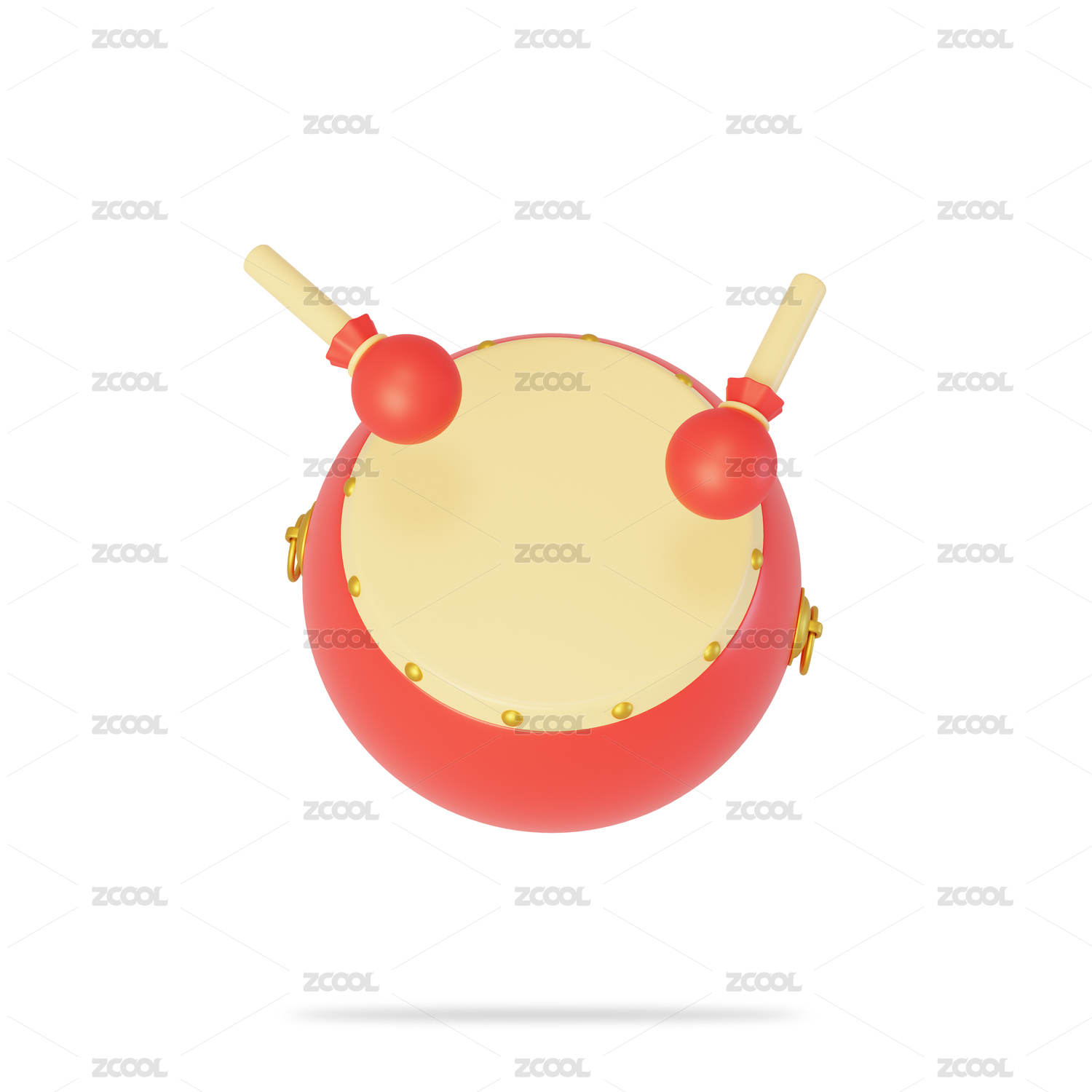 红色卡通锣鼓场景3D渲染