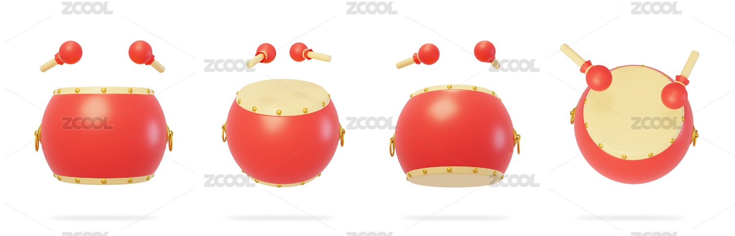 创意新年锣鼓3D渲染