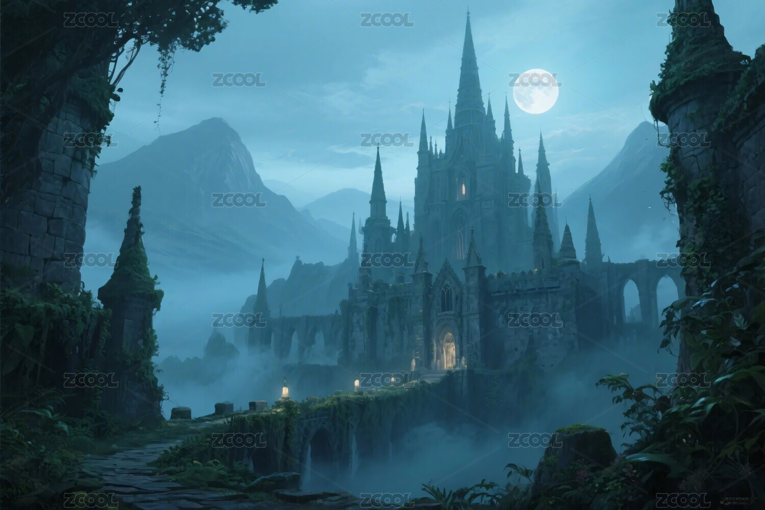 月夜下的神秘奇幻城堡