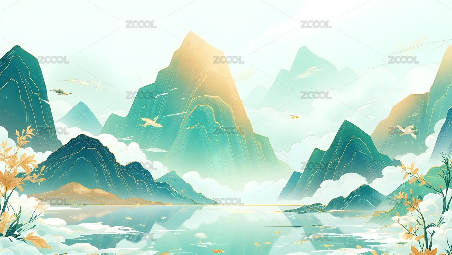 大自然,敦煌,复古,国风,国画,红日,户外,渐变,江山,旅游