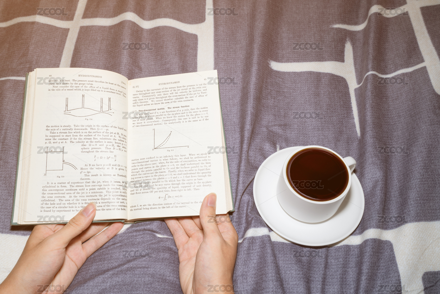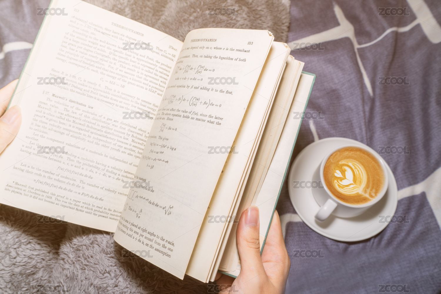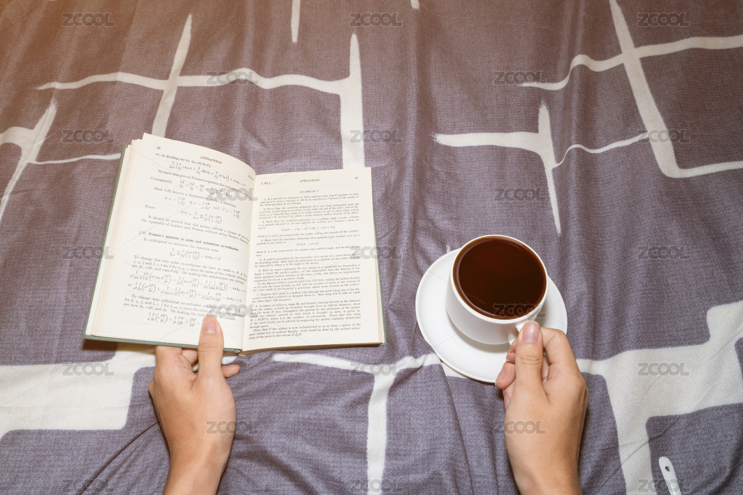 一个人在温暖的被子上看书学习放松喝咖啡喝奶茶