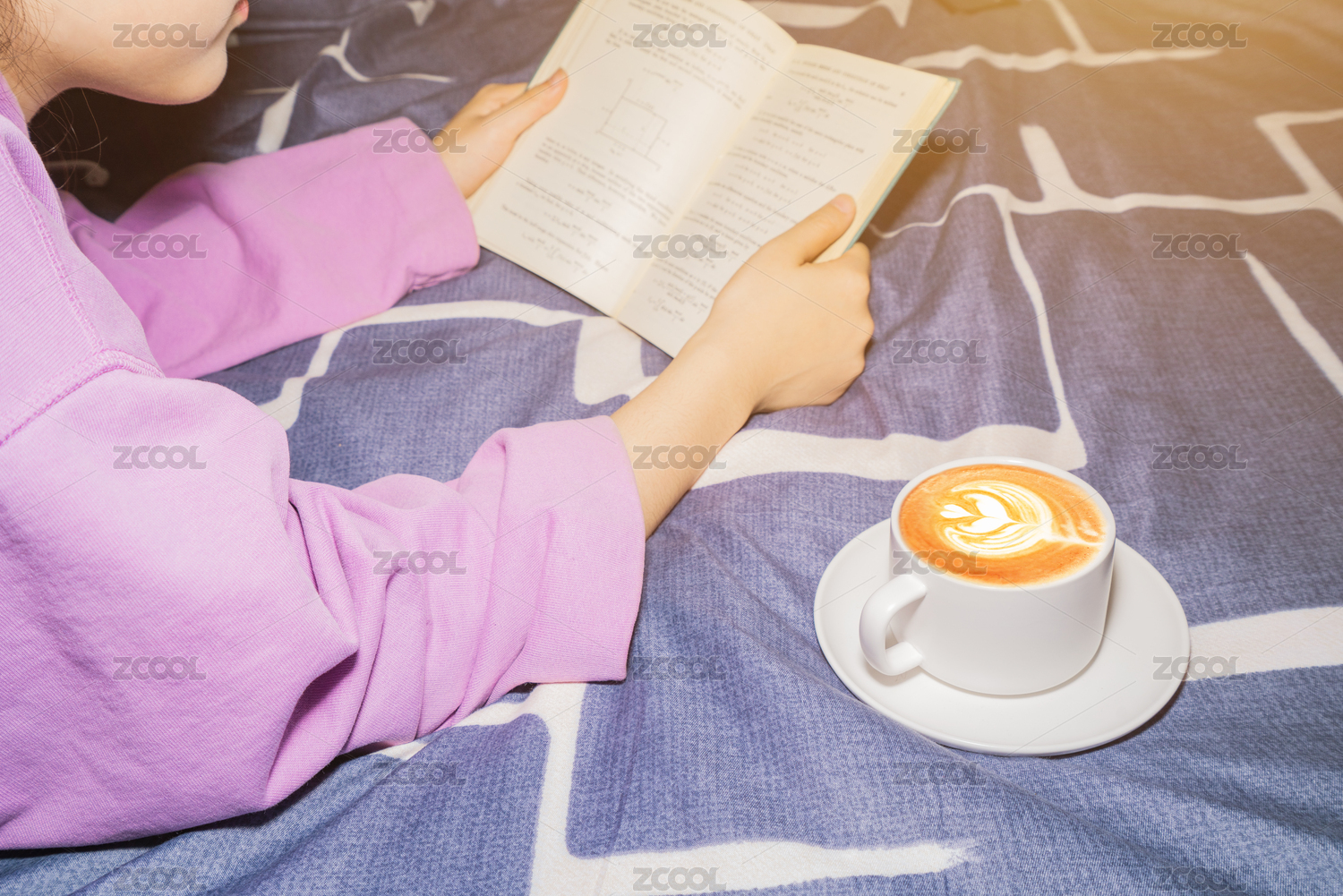 一个人在床上看书喝咖啡喝奶茶放松休闲惬意温暖温馨冬季生活